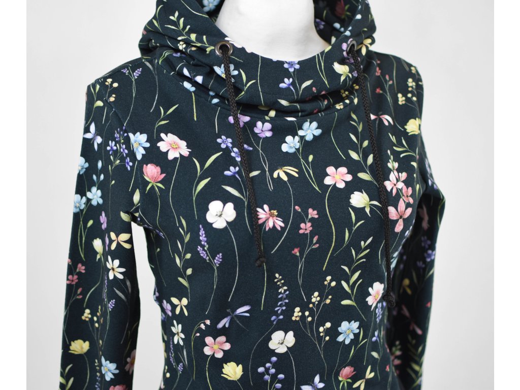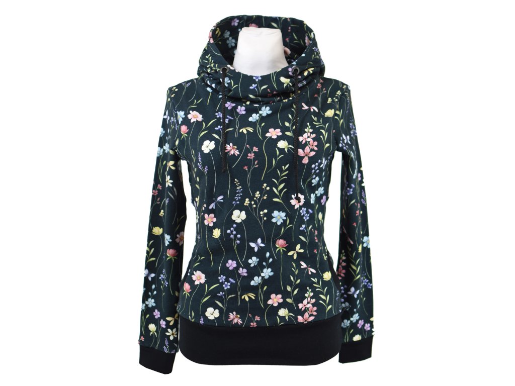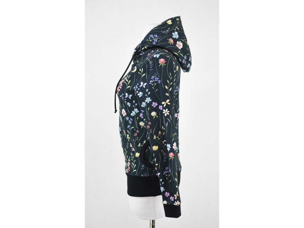 Mikina s kapucí - tmavá květinová