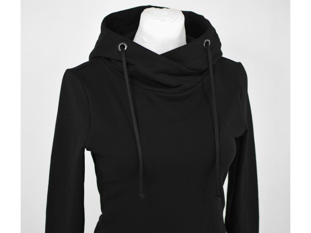 Dámská mikina zkrácené délky do pasu, vhodná ke kolovým a pasovým sukním... :) Má kapucu s překřížením u krku, dolní lem a rukávy jsou lemovány úpletem.