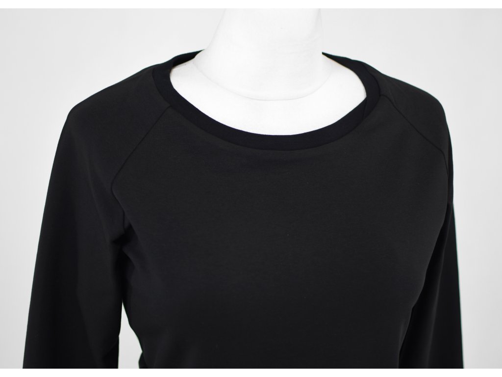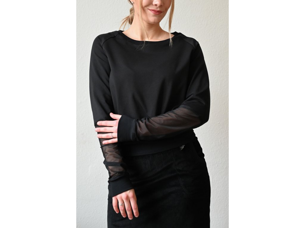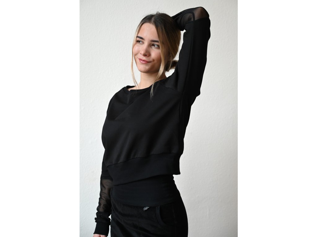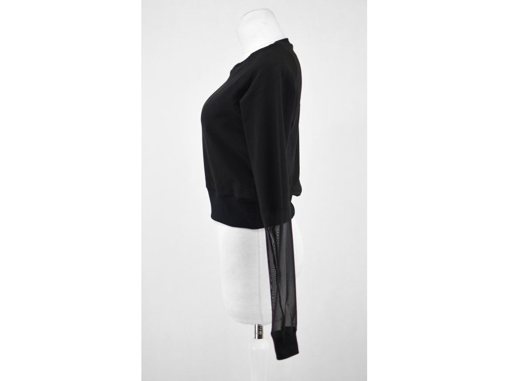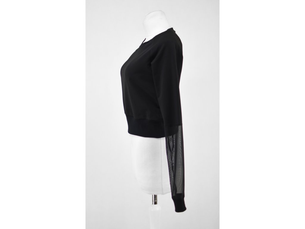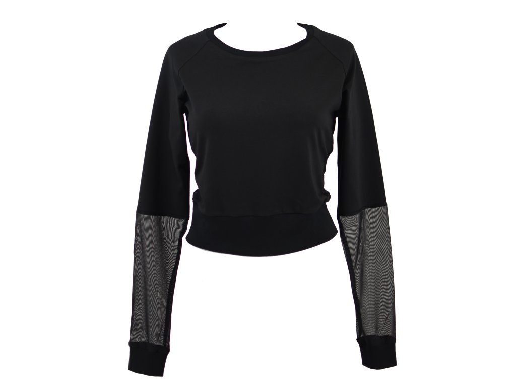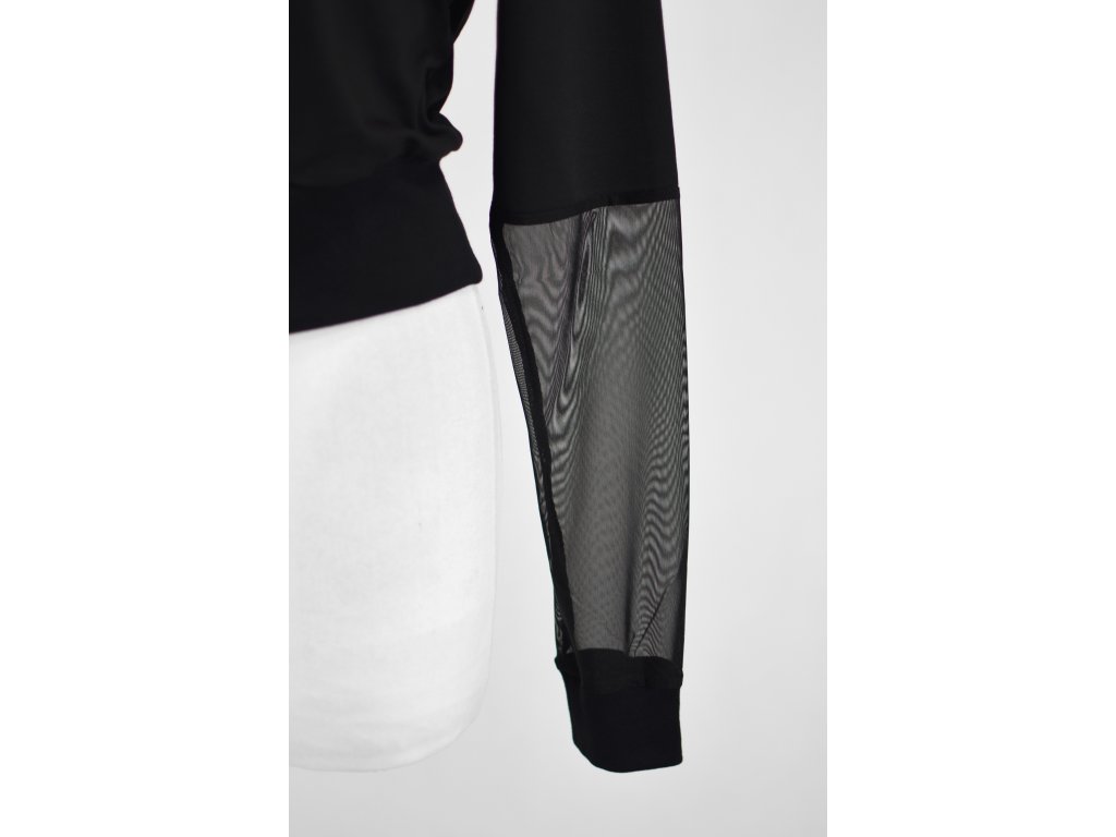 Dámská mikina zkrácené délky do pasu. S raglánovými rukávy, které jsou v dolní části tvořeny tylem. Průkrčník, dolní lem a rukávy jsou lemovány úpletem. S výšivkou loga BM na zadním dílu.