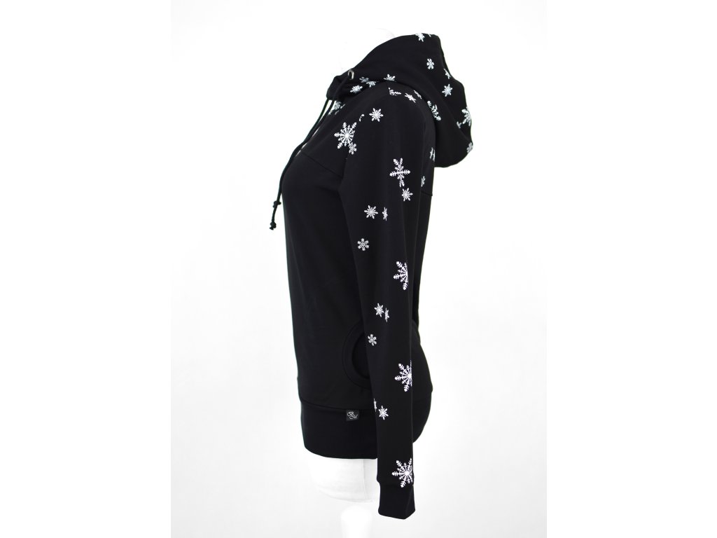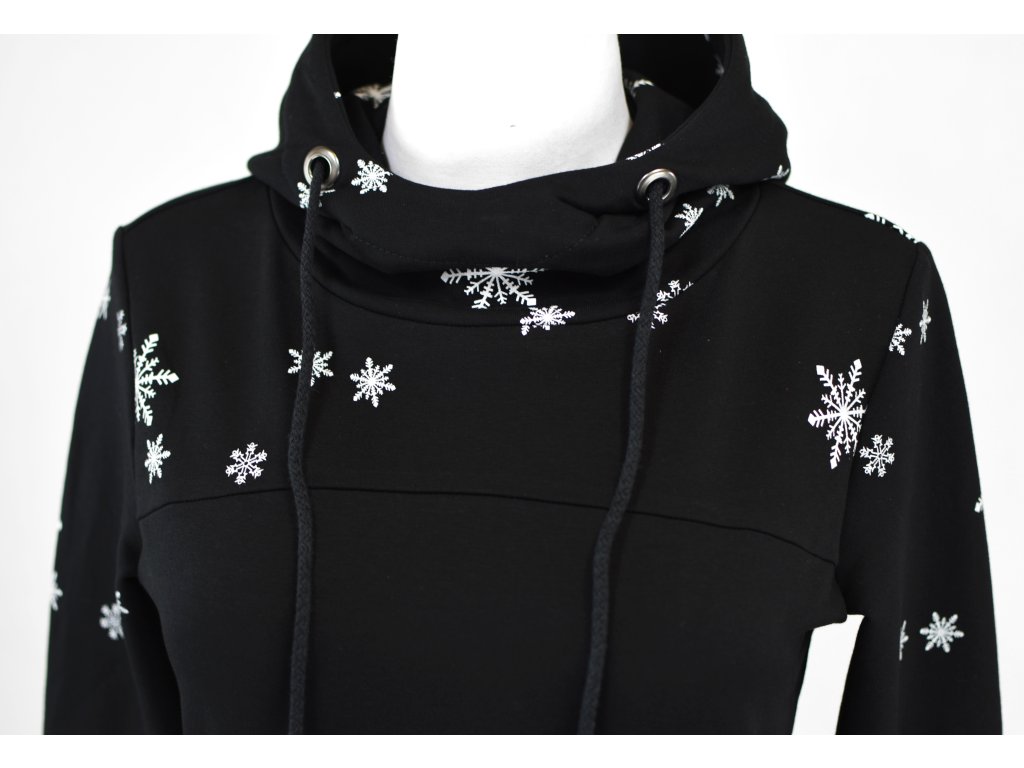 Mikina s kapucí - černá s vločkami