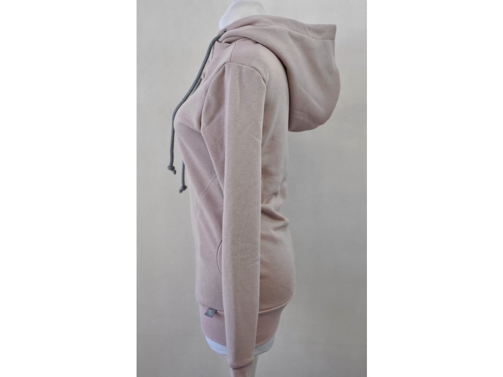 Dámská mikina s prodlouženými rukávy, rovnější v pase s obří kapucí a tkaničkou uvnitř na stažení. Kapsy a dolní lem jsou ukončeny nápletem... :)