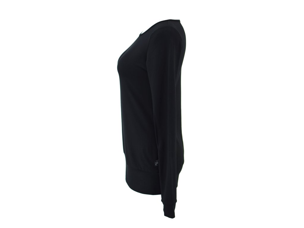 Dámská mikina z velmi příjemné měkké bambusové viskózy. Je slabší a může nahradit tričko, ale taky posloužit jako svrchní vrstva. Má kulatý olemovaný výstřih, v pase je jen jemně projmutá, přes bříško volná a v bocích zakončena nápletem - dobře se podkasá.