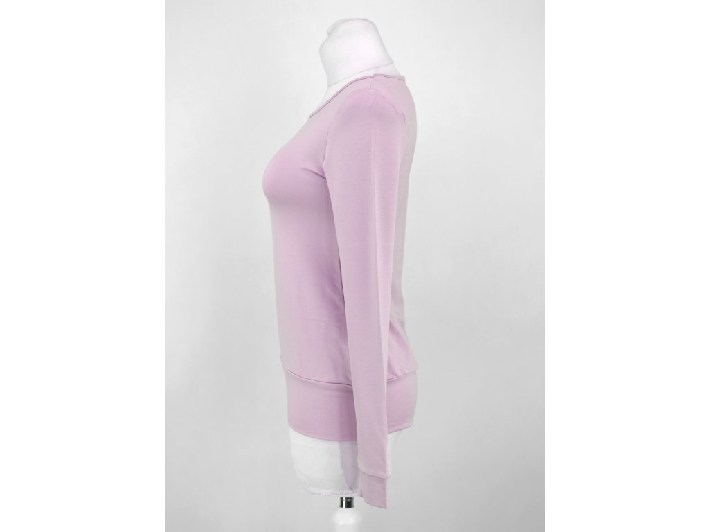 Dámská mikina z velmi příjemné měkké bambusové viskózy. Je slabší a může nahradit tričko, ale taky posloužit jako svrchní vrstva. Má kulatý olemovaný výstřih, v pase je jen jemně projmutá, přes bříško volná a v bocích zakončena nápletem - dobře se podkasá.