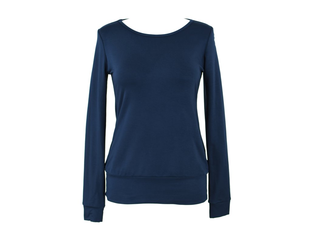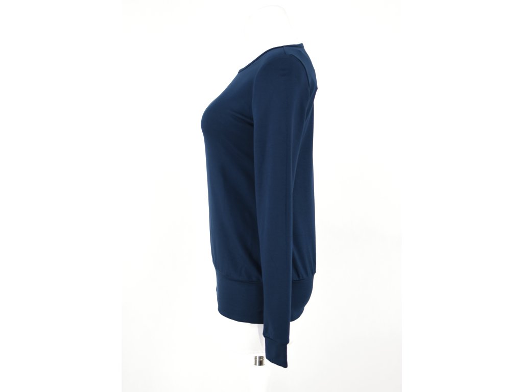 Dámská mikina z velmi příjemné měkké bambusové viskózy. Je slabší a může nahradit tričko, ale taky posloužit jako svrchní vrstva. Má kulatý olemovaný výstřih, v pase je jen jemně projmutá, přes bříško volná a v bocích zakončena nápletem - dobře se podkasá.