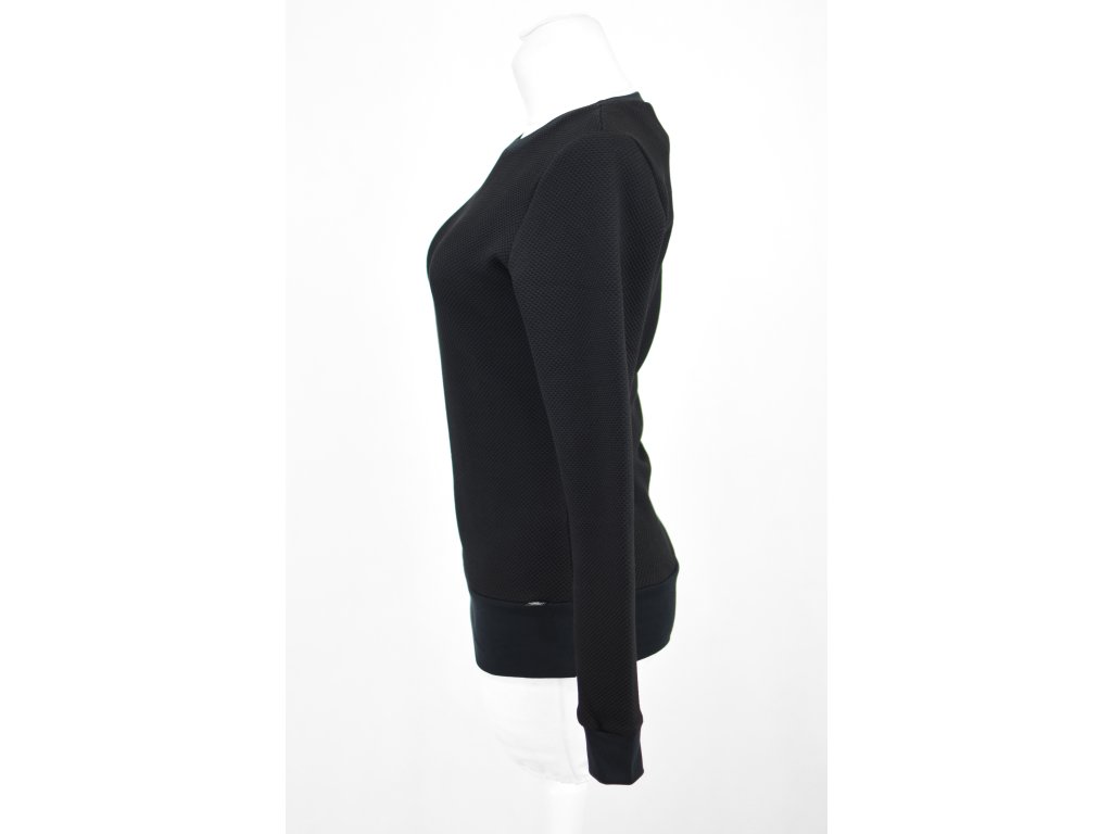 Dámská mikina prodloužené délky a s prodlouženými rukávy. Rovnější v pase, kapsy v bocích, průkrčník a rukávy jsou lemované úpletem.