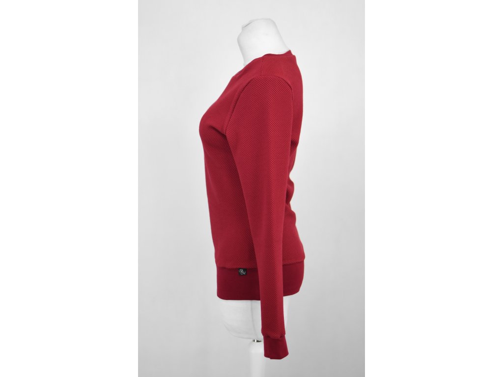 Dámská mikina prodloužené délky a s prodlouženými rukávy. Rovnější v pase, kapsy v bocích, průkrčník a rukávy jsou lemované úpletem.