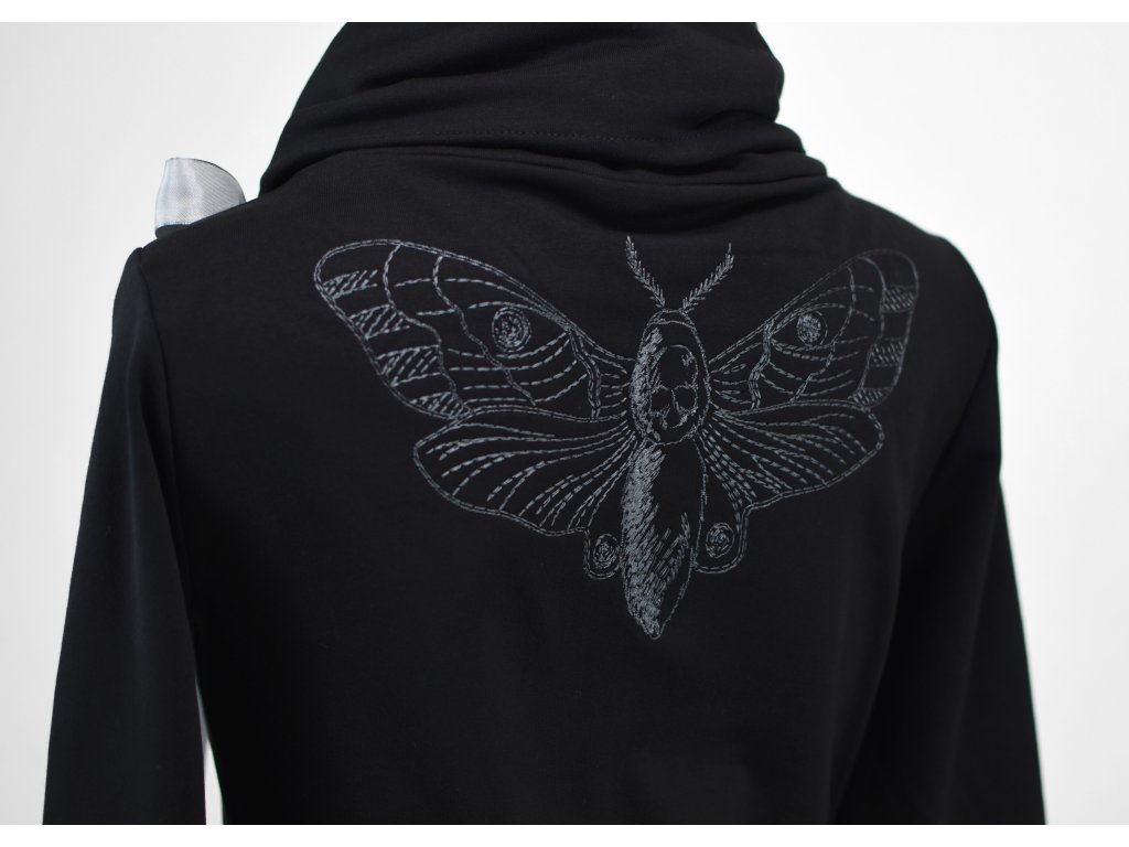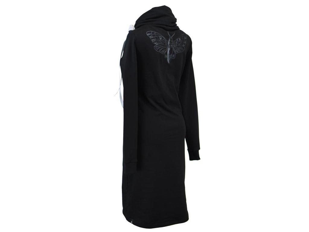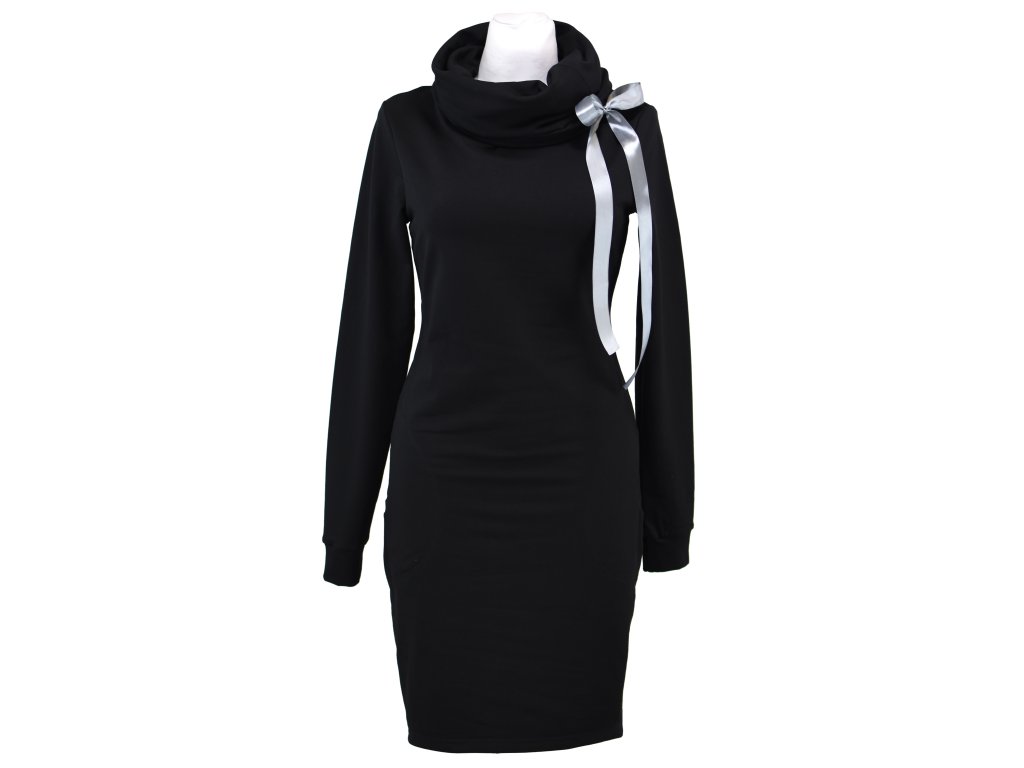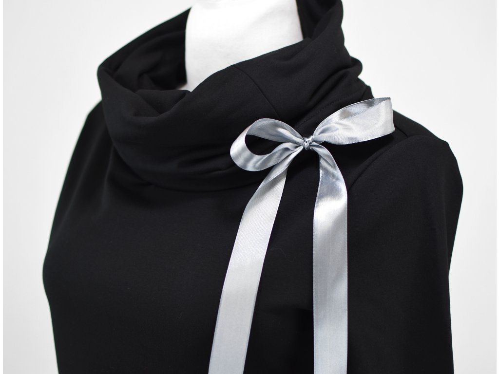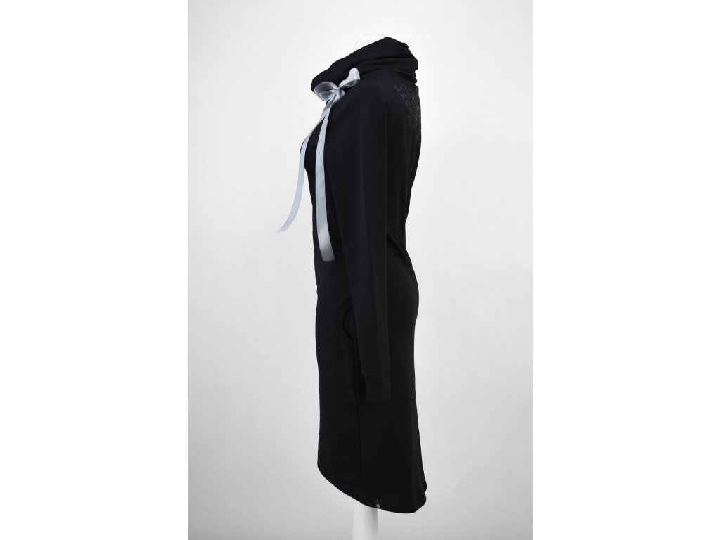 Mikinové šaty z úpletu s prodlouženou délkou rukávů, obřím límcem se stuhou na stažení, kapsy lemované nápletem. Zadní díl je prodloužený. Pohodlný sportovně-ležérní střih. Příjemný hřejivý kousek na chladné dny. Nositelné přes džíny či legíny... :)