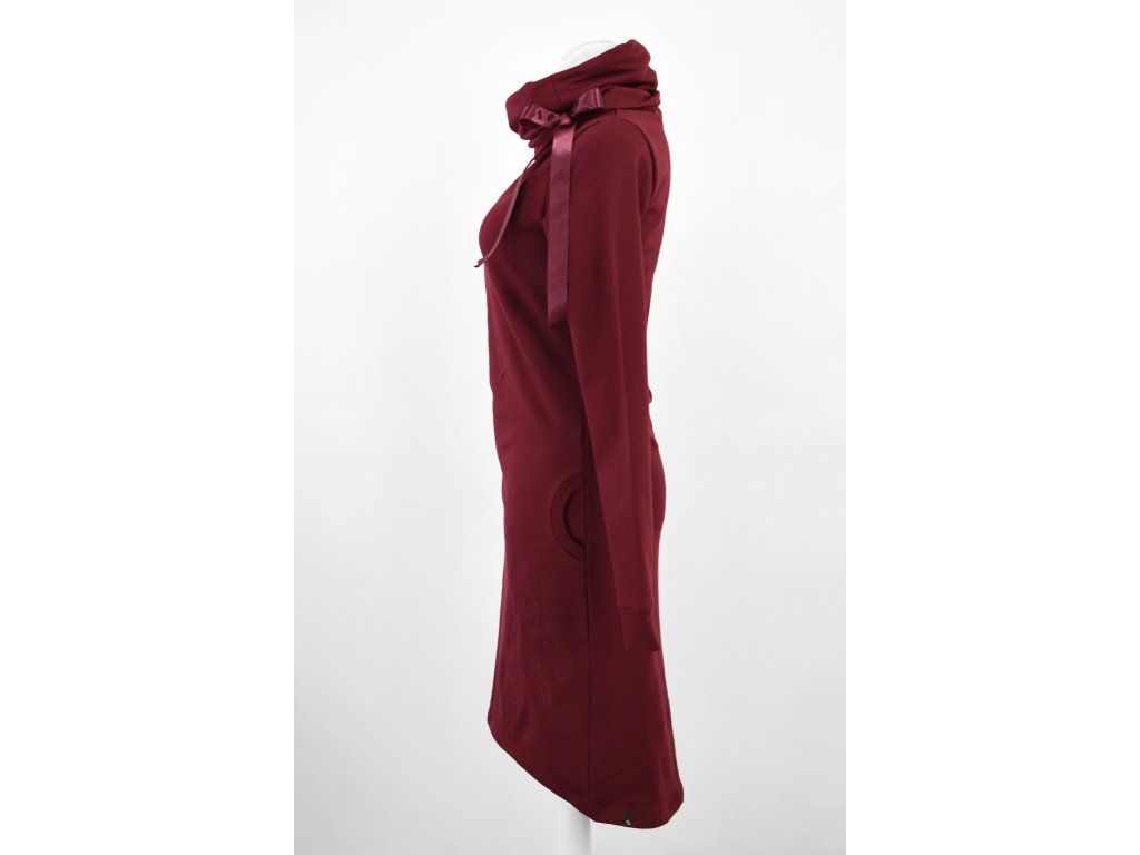 Mikinové šaty z úpletu s prodlouženou délkou rukávů, obřím límcem se stuhou na stažení, kapsy lemované nápletem. Zadní díl je prodloužený. Pohodlný sportovně-ležérní střih. Příjemný hřejivý kousek na chladné dny. Nositelné přes džíny či legíny... :)