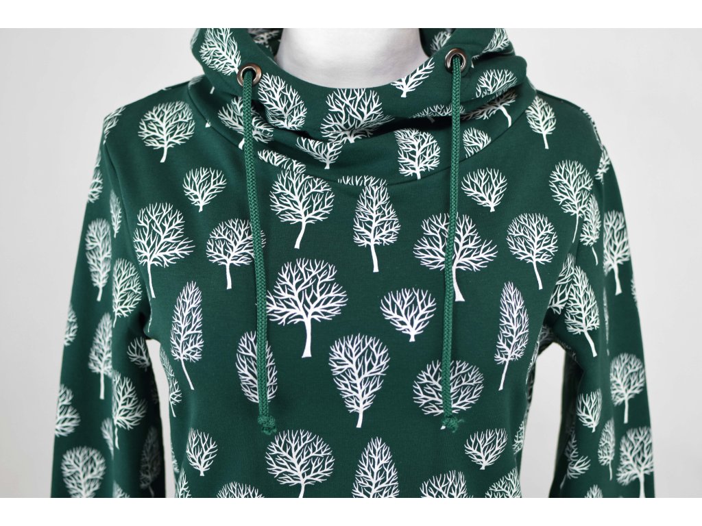 - Materiál: 96% bavlna, 4% elastan – počesaný úplet, elastický, středně silný, s potiskem stromů