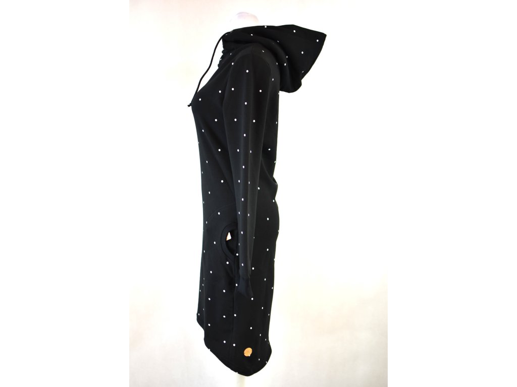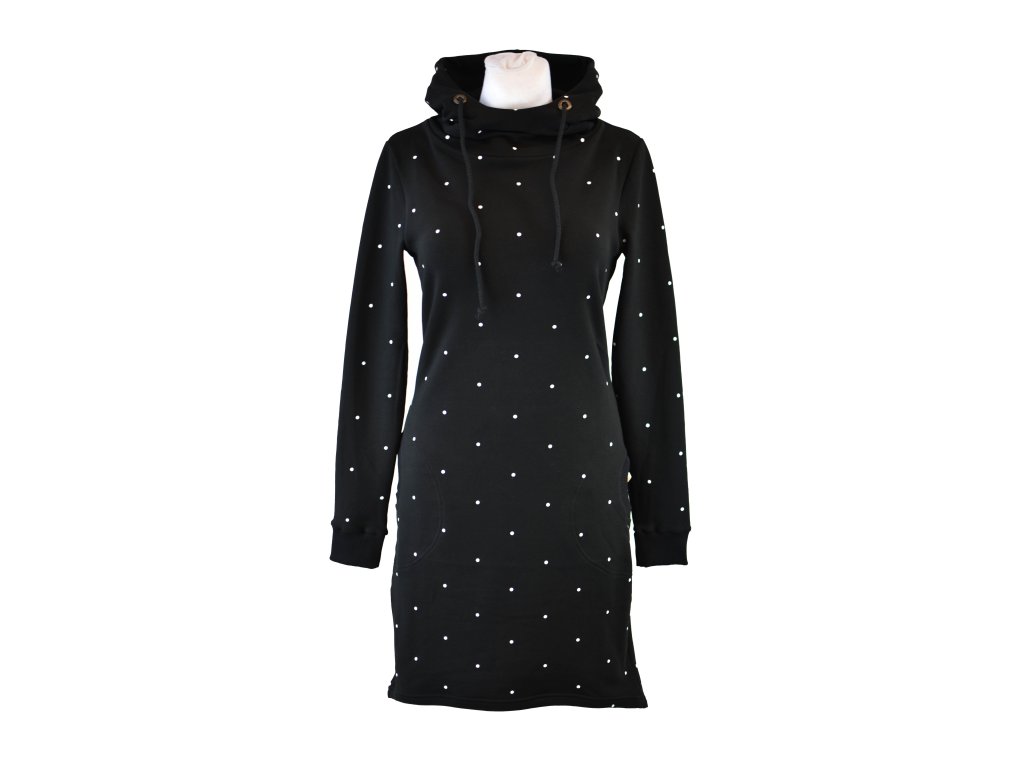 Mikinové šaty - černé puntíkaté