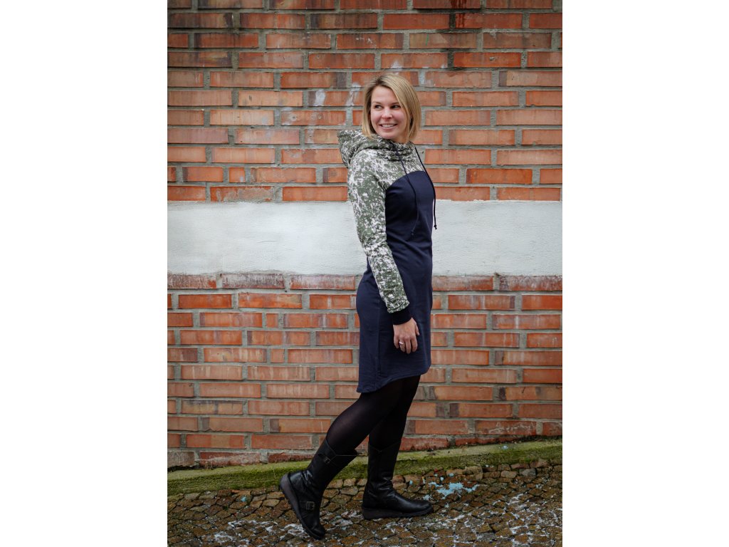 Mikinové šaty - modré s khaki