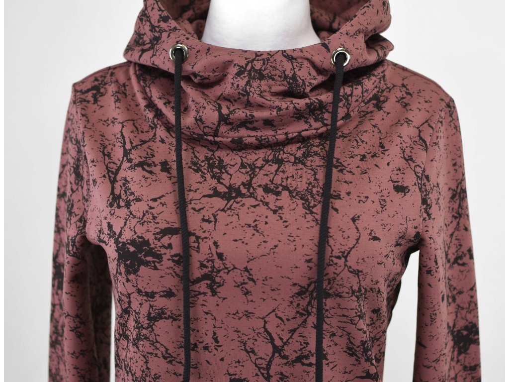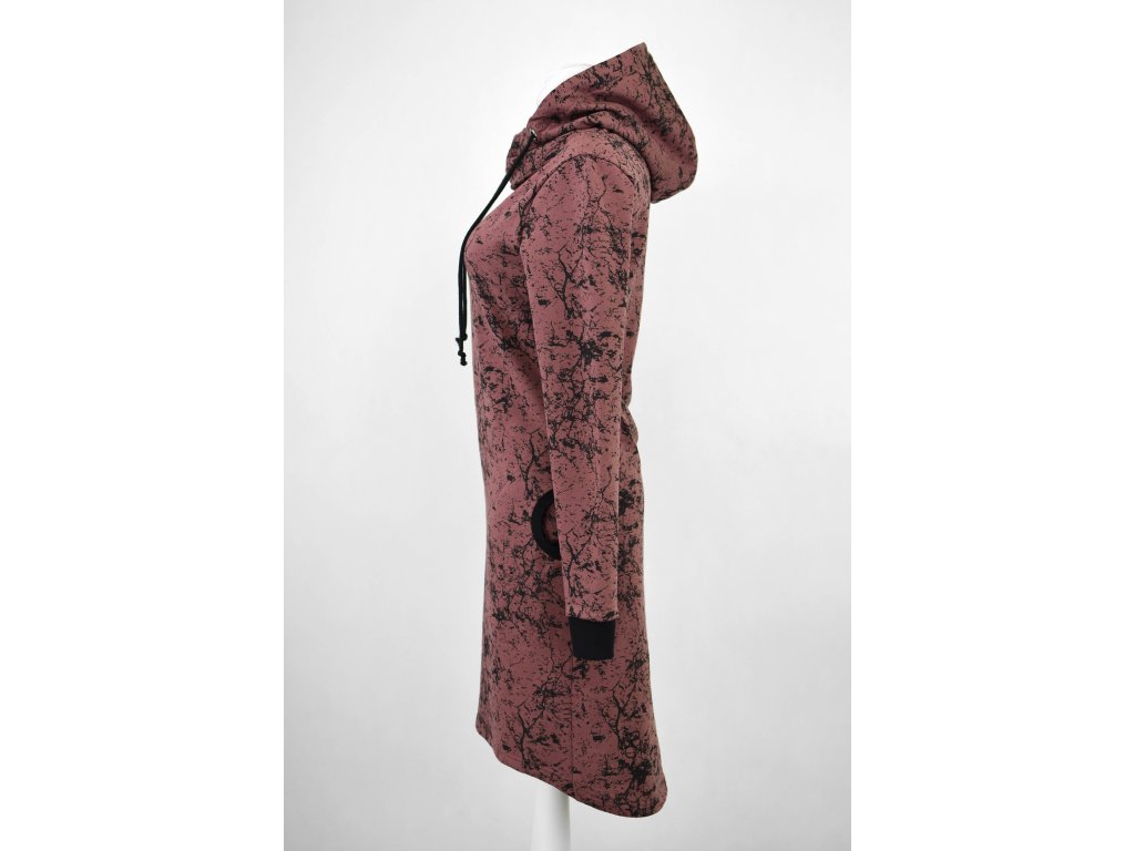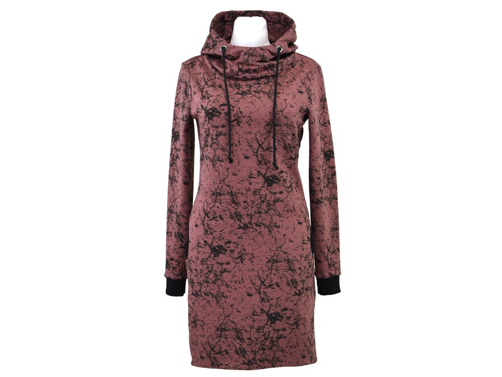 Mikinové šaty z úpletu s prodlouženou délkou rukávů, velkou kapucí se šňůrkami na stažení, kapsy lemované nápletem. Zadní díl je prodloužený. Pohodlný sportovně-ležérní střih. Příjemný hřejivý kousek na chladné dny. Nositelné přes džíny či legíny... :)