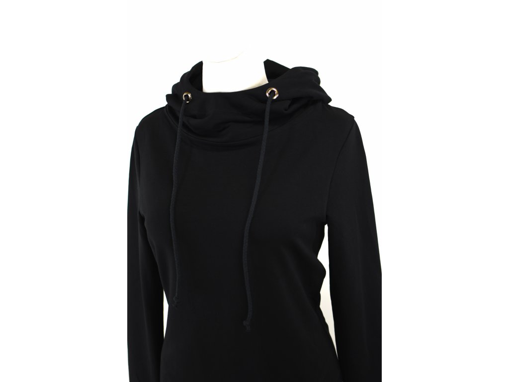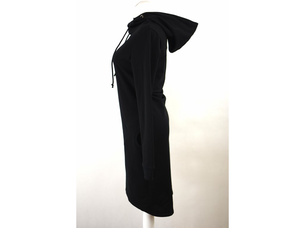 Mikinové šaty z úpletu s prodlouženou délkou rukávů, velkou kapucí se šňůrkami na stažení, kapsy lemované nápletem. Zadní díl je prodloužený. Pohodlný sportovně-ležérní střih. Příjemný hřejivý kousek na chladné dny. Nositelné přes džíny či legíny... :)