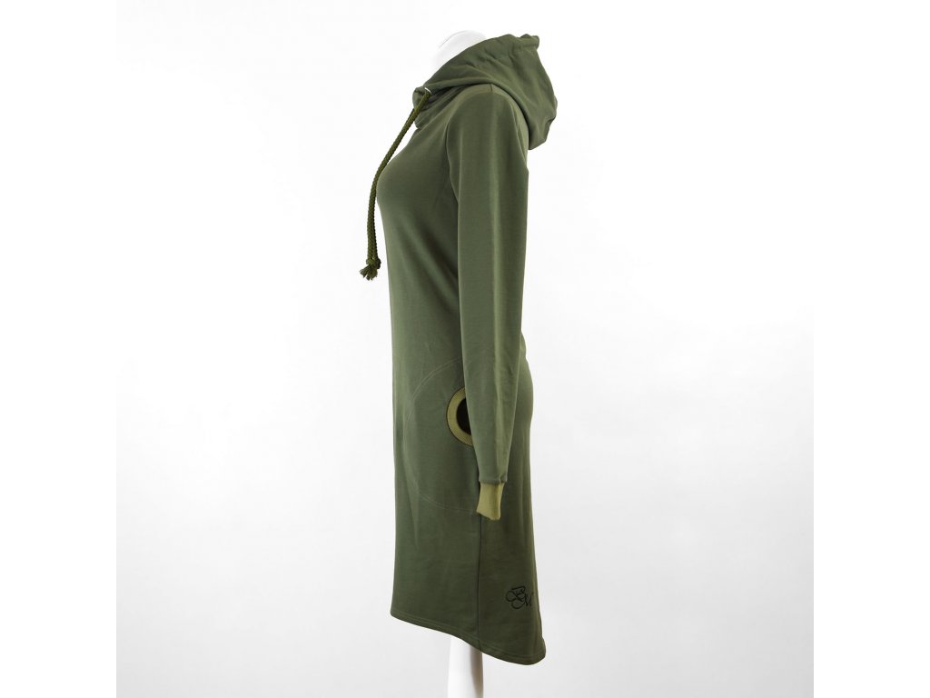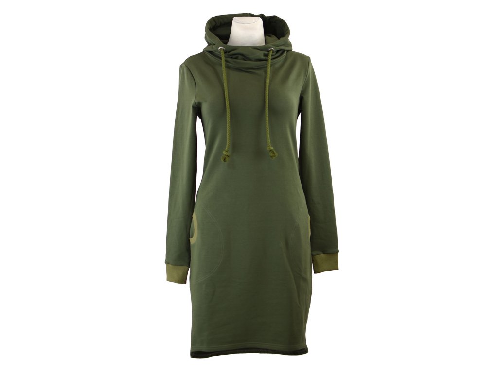 Nové mikinové šaty vycházející ze střihu našich základních mikin, které jsme prodloužili a lehce doladili střih. Mikinové šaty z úpletu s prodlouženou délkou rukávů, obřím límcem se stuhou na stažení, kapsy lemované nápletem, přinechaná volnost přes pas. Pohodlný sportovně-ležérní střih. Příjemný hřejivý kousek na zimu. Nositelné přes jeany či legíny... :)