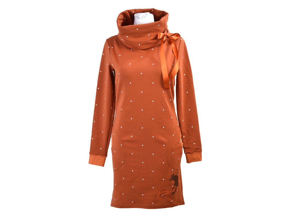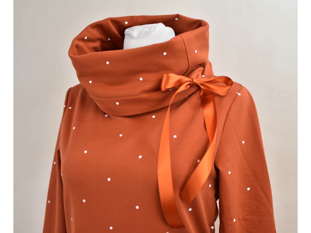 Nové mikinové šaty vycházející ze střihu našich základních mikin, které jsme prodloužili a lehce doladili střih. Mikinové šaty z úpletu s prodlouženou délkou rukávů, obřím límcem se stuhou na stažení, kapsy lemované nápletem, přinechaná volnost přes pas. Pohodlný sportovně-ležérní střih. Příjemný hřejivý kousek na zimu. Nositelné přes jeany či legíny... :)