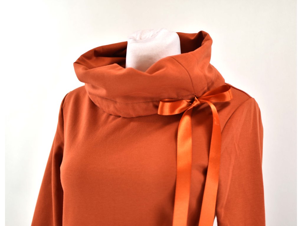 Nové mikinové šaty vycházející ze střihu našich základních mikin, které jsme prodloužili a lehce doladili střih. Mikinové šaty z úpletu s prodlouženou délkou rukávů, obřím límcem se stuhou na stažení, kapsy lemované nápletem, přinechaná volnost přes pas. Pohodlný sportovně-ležérní střih. Příjemný hřejivý kousek na zimu. Nositelné přes jeany či legíny... :)