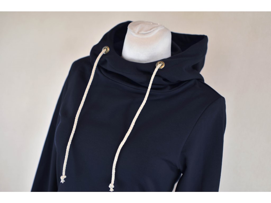 Nové mikinové šaty vycházející ze střihu našich základních mikin, které jsme prodloužili a lehce doladili střih. Mikinové šaty z úpletu s prodlouženou délkou rukávů, obří kapucí se šňůrou vevnitř, kapsy lemované nápletem, přinechaná volnost přes pas. Pohodlný sportovně-ležérní střih. Příjemný hřejivý kousek na zimu. Nositelné přes jeany či legíny... :)