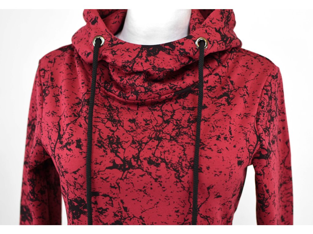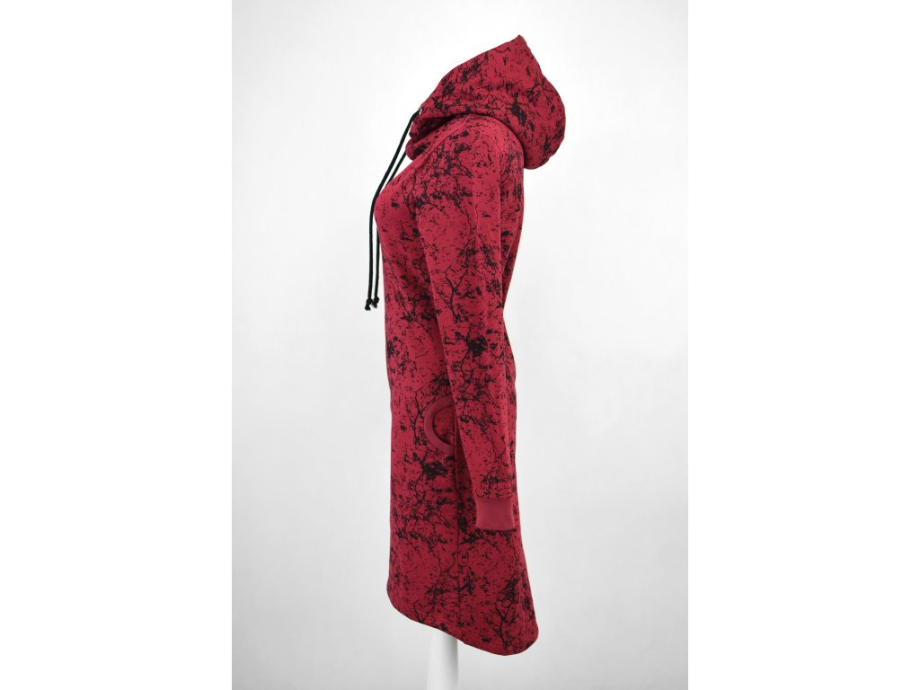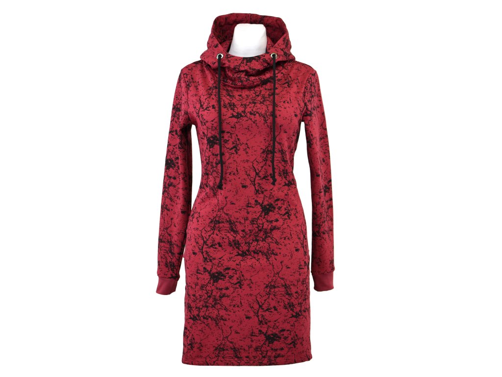 Mikinové šaty z úpletu s prodlouženou délkou rukávů, velkou kapucí se šňůrkami na stažení, kapsy lemované nápletem. Zadní díl je prodloužený. Pohodlný sportovně-ležérní střih. Příjemný hřejivý kousek na chladné dny. Nositelné přes džíny či legíny... :)