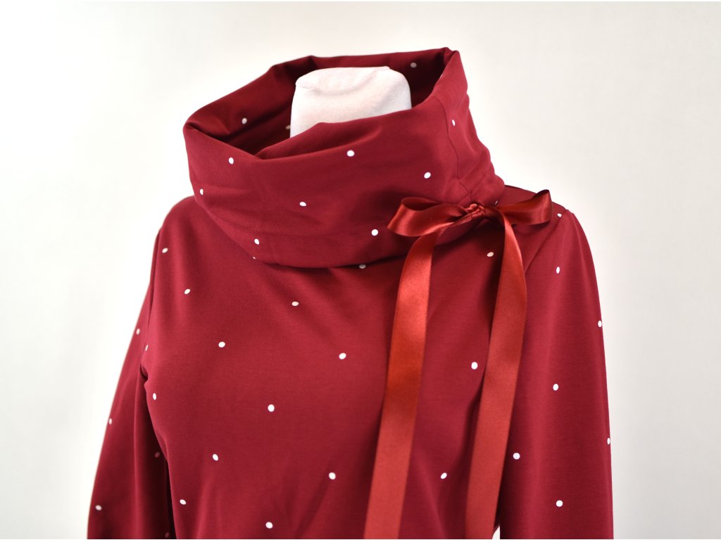 Nové mikinové šaty vycházející ze střihu našich základních mikin, které jsme prodloužili a lehce doladili střih. Mikinové šaty z úpletu s prodlouženou délkou rukávů, obřím límcem se stuhou na stažení, kapsy lemované nápletem, přinechaná volnost přes pas. Pohodlný sportovně-ležérní střih. Příjemný hřejivý kousek na zimu. Nositelné přes jeany či legíny... :)