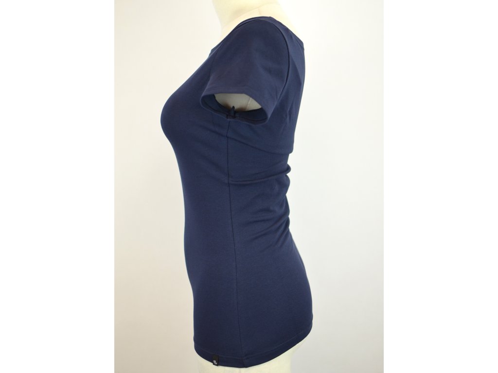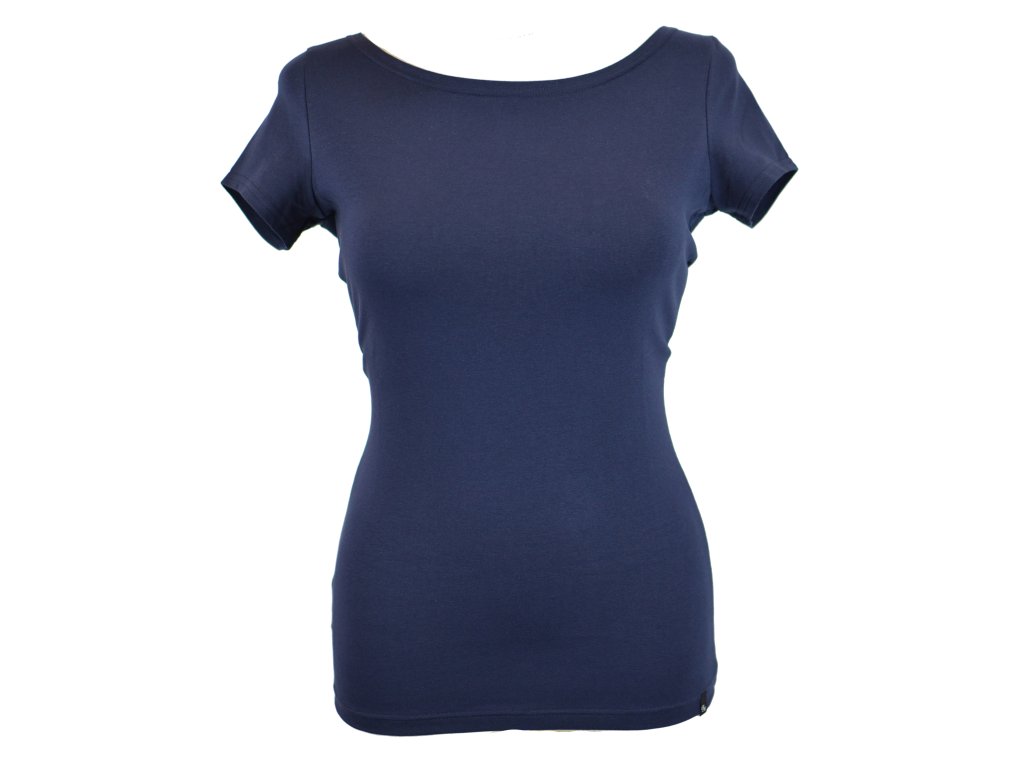 Dámské tričko z příjemného elastického úpletu. V pase projmuté, lodičkový výstřih.