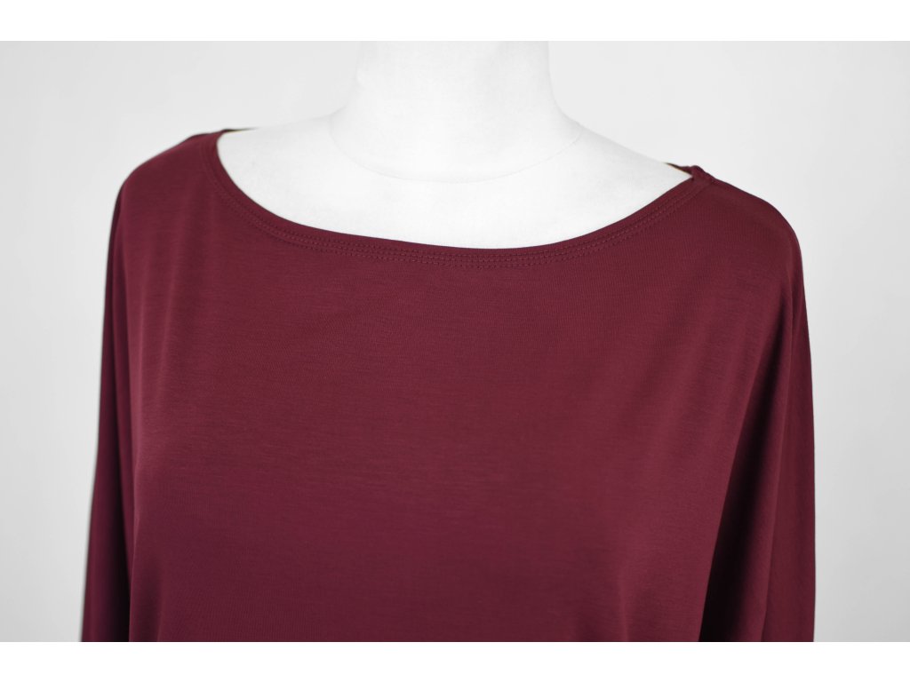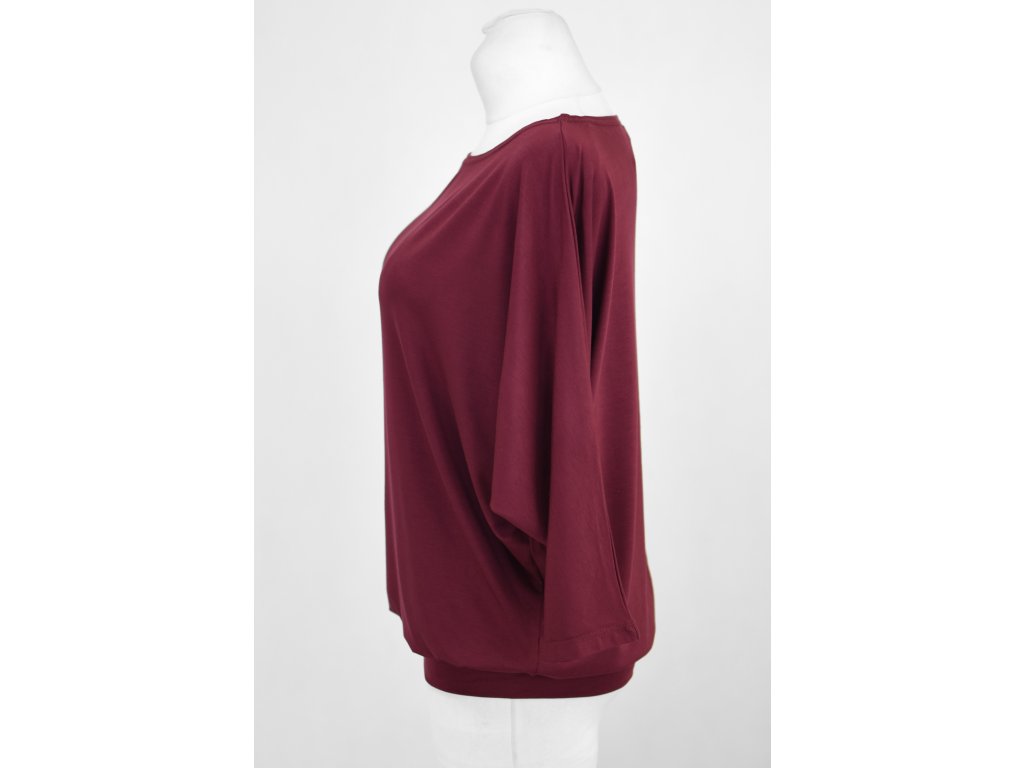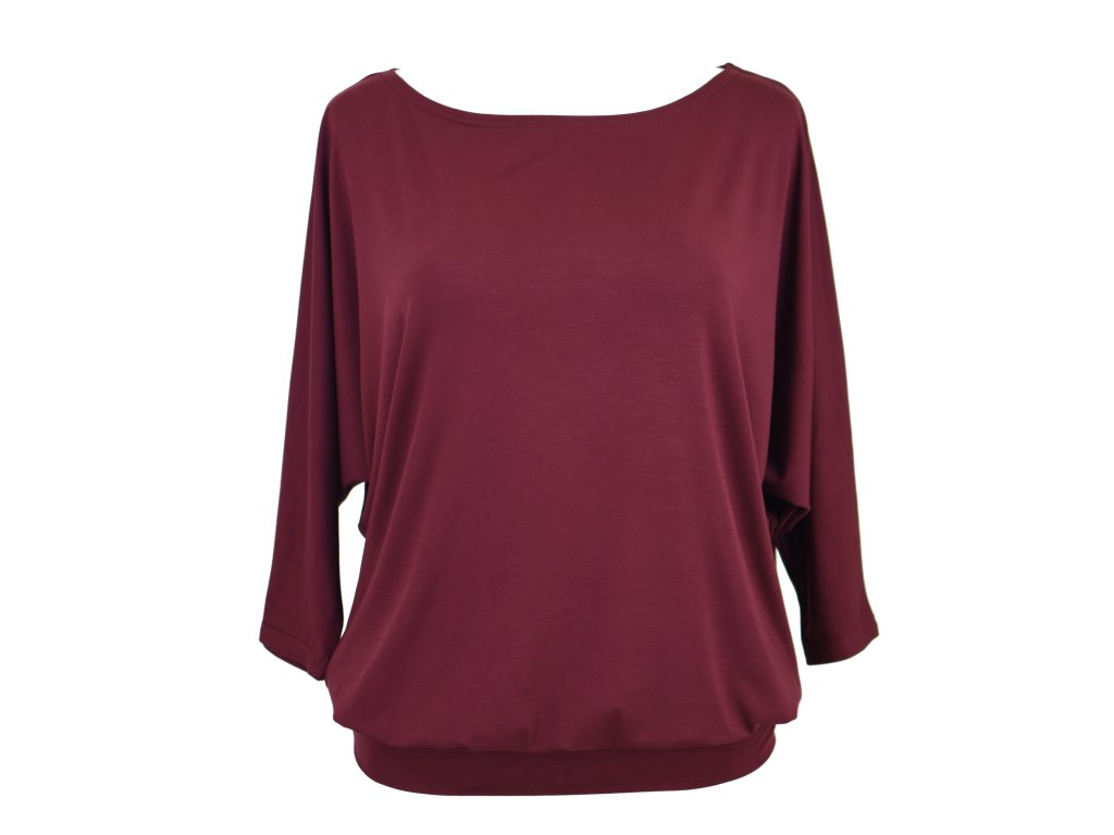 Dámské tričko netopýřího střihu z elastického úpletu z bambusové viskózy. Má širší výstřih a netopýří rukávky. Je s volným hrudníkem a je podkasaný do dvojitého lemu v dolním okraji. Tričko působí volně a ležérně. Bambus jako takový je pak velmi jemný a má i mírný lesk. Je antibakteriální a vhodný i na sport.