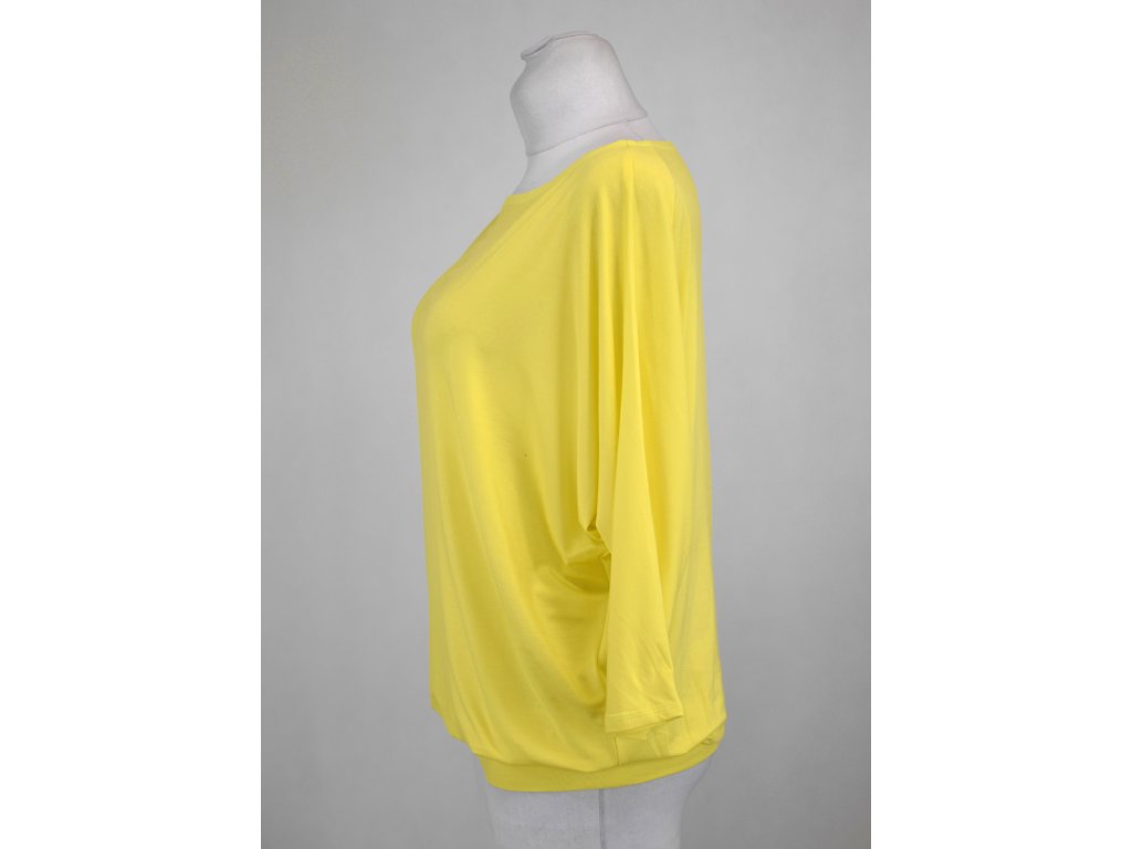 Dámské tričko netopýřího střihu z elastického úpletu z bambusové viskózy. Má širší výstřih a netopýří rukávky. Je s volným hrudníkem a je podkasaný do dvojitého lemu v dolním okraji. Tričko působí volně a ležérně. Bambus jako takový je pak velmi jemný a má i mírný lesk. Je antibakteriální a vhodný i na sport.