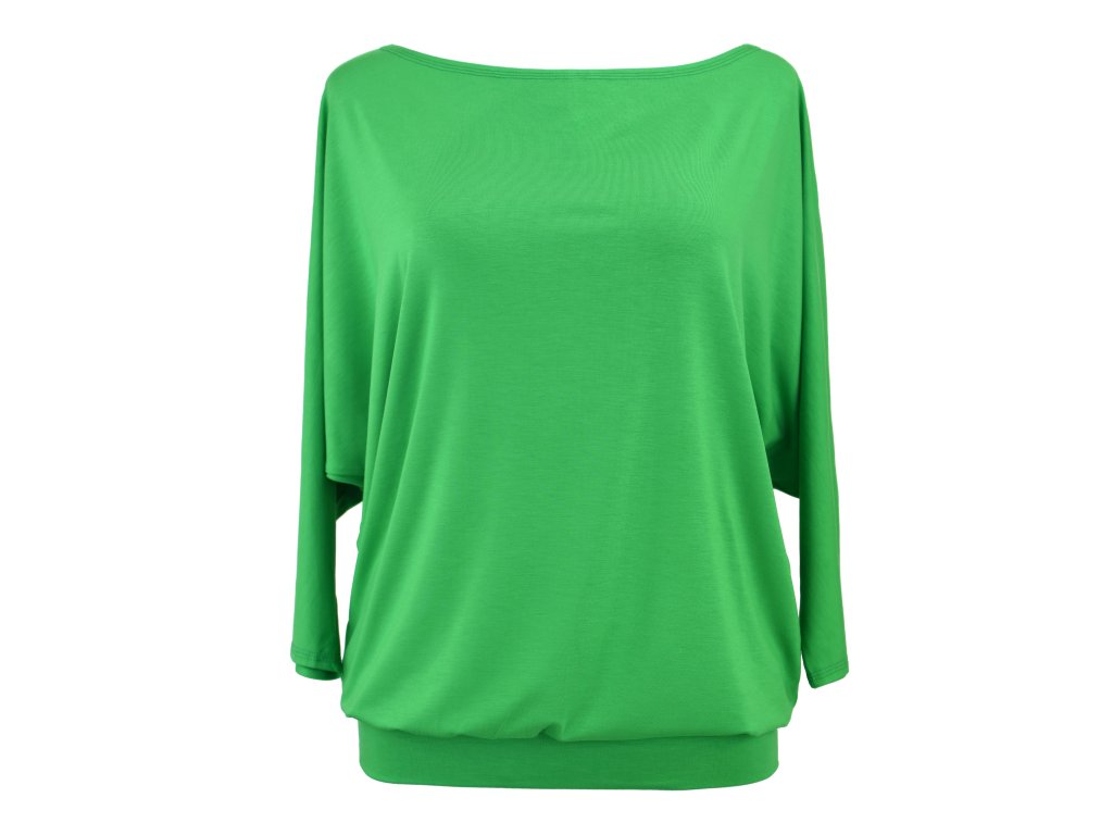 Dámské tričko netopýřího střihu z elastického úpletu z bambusové viskózy. Má širší výstřih a netopýří rukávky. Je s volným hrudníkem a je podkasaný do dvojitého lemu v dolním okraji. Tričko působí volně a ležérně. Bambus jako takový je pak velmi jemný a má i mírný lesk. Je antibakteriální a vhodný i na sport.