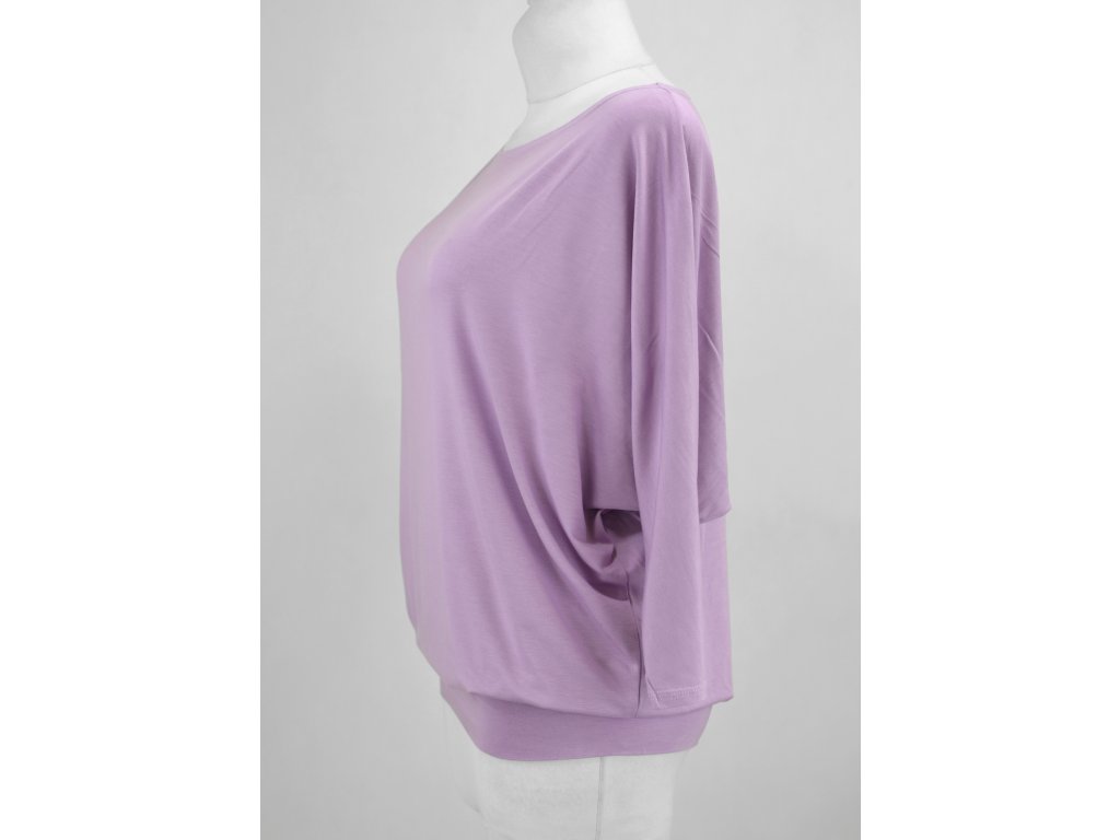 Dámské tričko netopýřího střihu z elastického úpletu z bambusové viskózy. Má širší výstřih a netopýří rukávky. Je s volným hrudníkem a je podkasaný do dvojitého lemu v dolním okraji. Tričko působí volně a ležérně. Bambus jako takový je pak velmi jemný a má i mírný lesk. Je antibakteriální a vhodný i na sport.