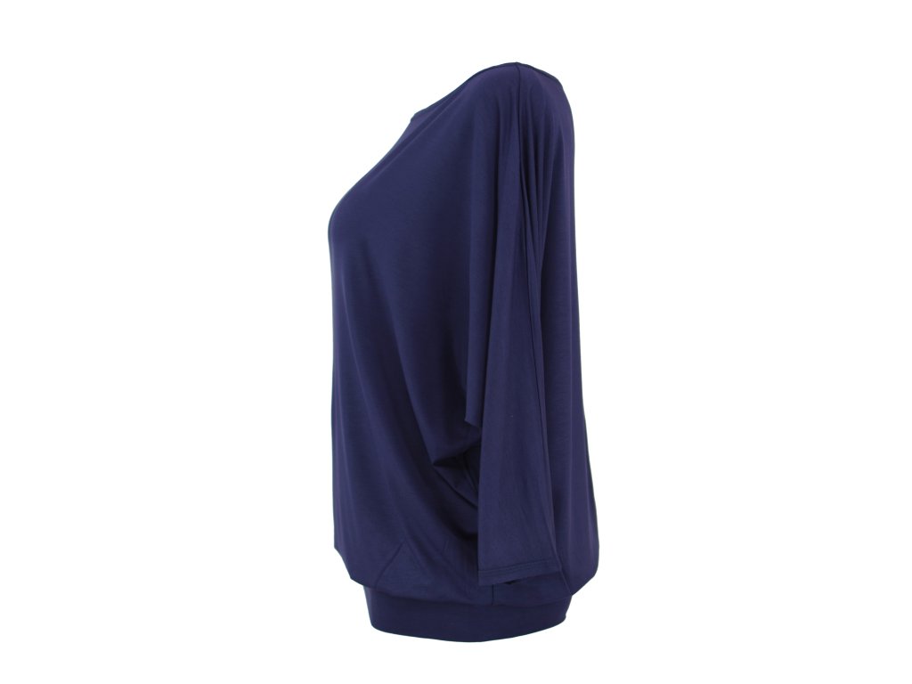 Dámské tričko netopýřího střihu z elastického úpletu z bambusové viskózy. Má širší výstřih a netopýří rukávky. Je s volným hrudníkem a je podkasaný do dvojitého lemu v dolním okraji. Tričko působí volně a ležérně. Bambus jako takový je pak velmi jemný a má i mírný lesk. Je antibakteriální a vhodný i na sport.