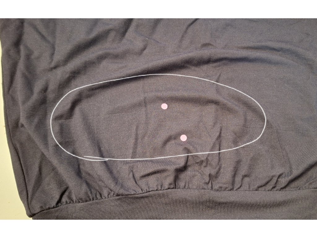 Obvod přes hrudník (triko je zde volné, pouze orientační míra): 120 cm