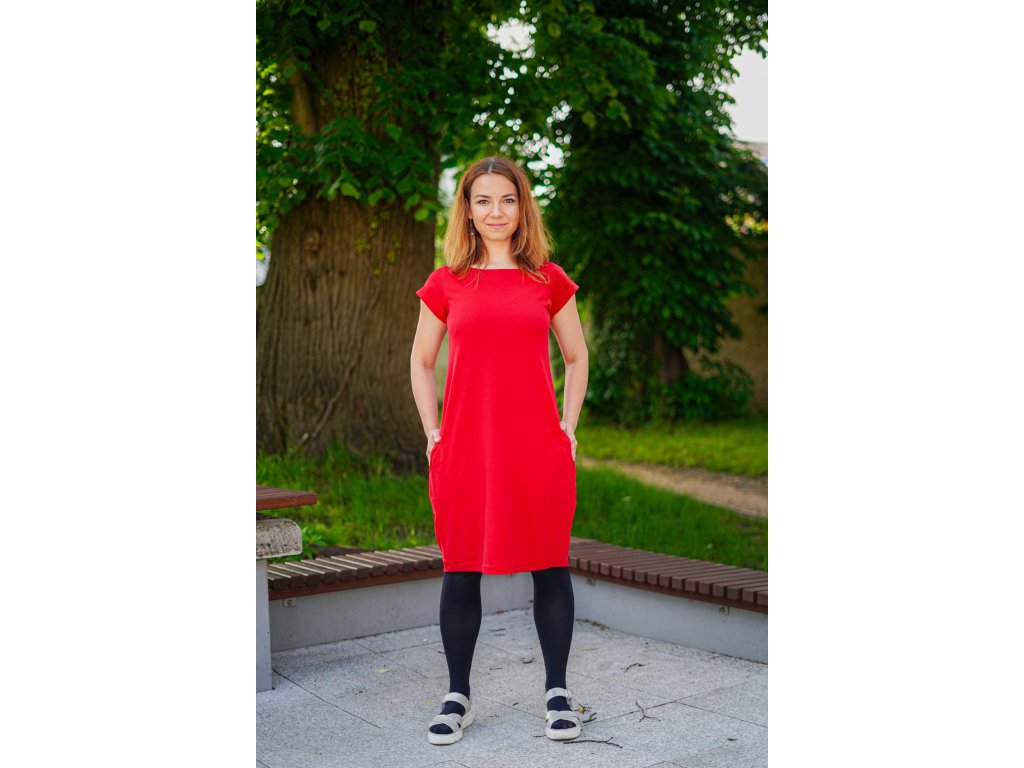 Šaty oversized - krátký rukáv - červené