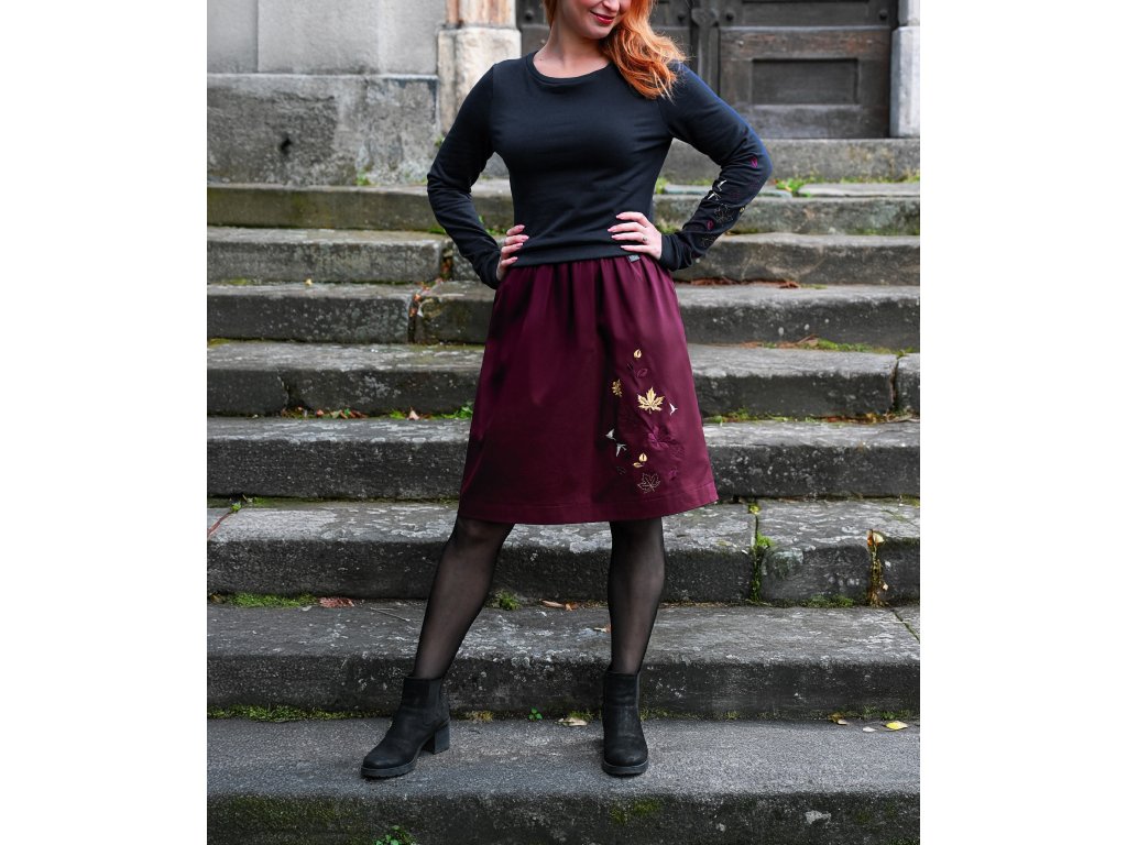 ♡ Střih jsme upravili - sukně je užší, má jinak vsazenou gumu a v horní části je více tvarovaná záhybkama.