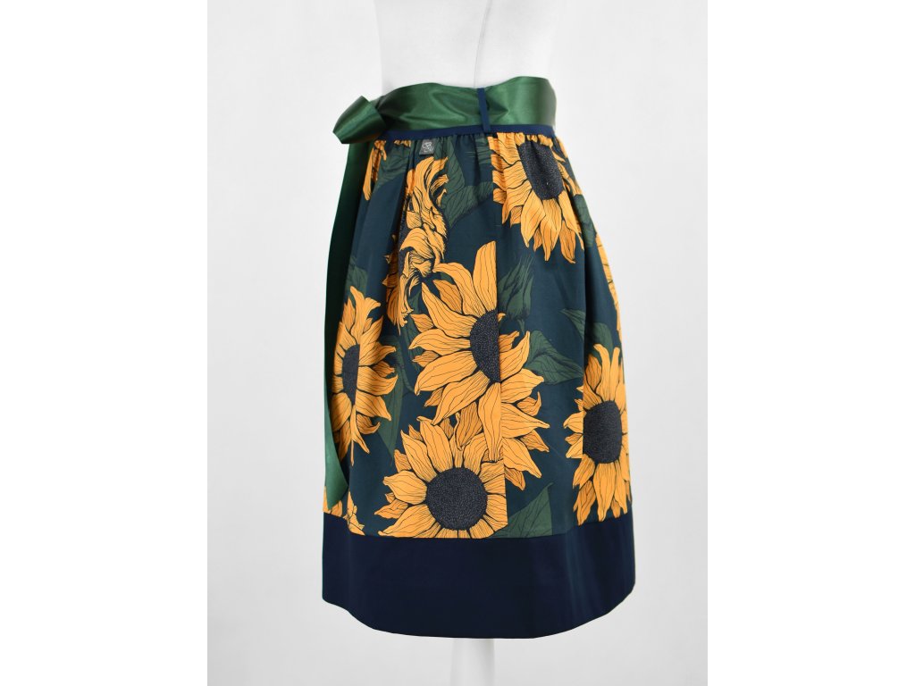 Dámská sukně s elastickou gumou do pasu, rovného střihu se skrytými kapsami v bocích. Má podšívku a poutka v pase na protažení ozdobné mašle.