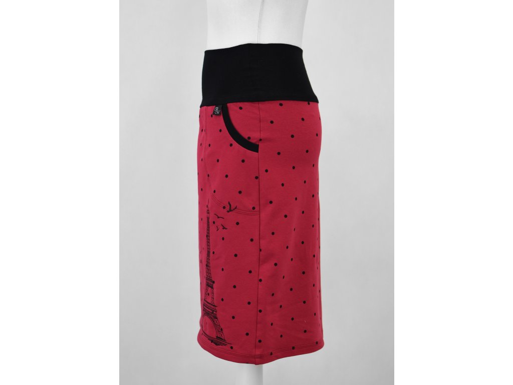 Dámská sukně pouzdrového střihu s dvojitým elastickým pasovým okrajem vhodným pro většinu velikostí. Sukně je na tělo a obepne hýždě a nohy. Kapsy v bocích jsou olemovány pružným nápletem. Nemá podšívku, dá se i tak nosit na punčochy i holé nohy.