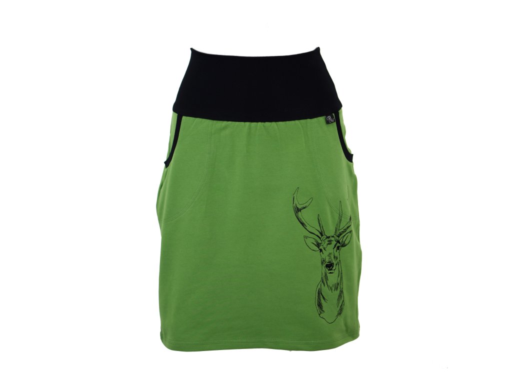 Dámská sukně pouzdrového střihu s dvojitým elastickým pasovým okrajem vhodným pro většinu velikostí. Sukně je na tělo a obepne hýždě a nohy. Kapsy v bocích jsou olemovány pružným nápletem. Nemá podšívku, dá se i tak nosit na punčochy i holé nohy.
