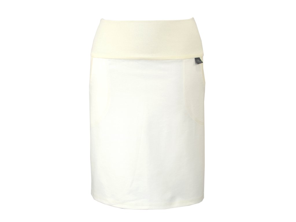 Dámská sukně pouzdrového střihu s dvojitým elastickým pasovým okrajem vhodným pro většinu velikostí. Sukně je na tělo a obepne hýždě a nohy. Kapsy v bocích jsou olemovány pružným nápletem. Nemá podšívku, dá se i tak nosit na punčochy i holé nohy.