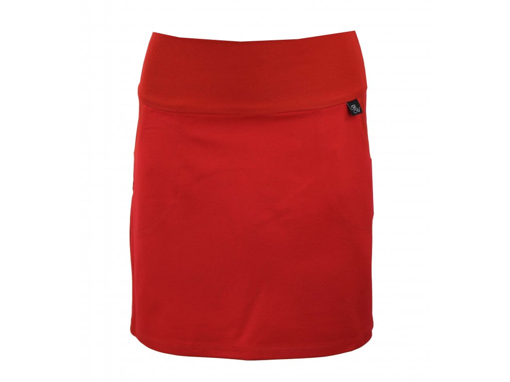 Dámská sukně pouzdrového střihu s dvojitým elastickým pasovým okrajem vhodným pro většinu velikostí. Sukně je na tělo a obepne hýždě a nohy. Kapsy v bocích jsou olemovány pružným nápletem. Nemá podšívku, dá se i tak nosit na punčochy i holé nohy.