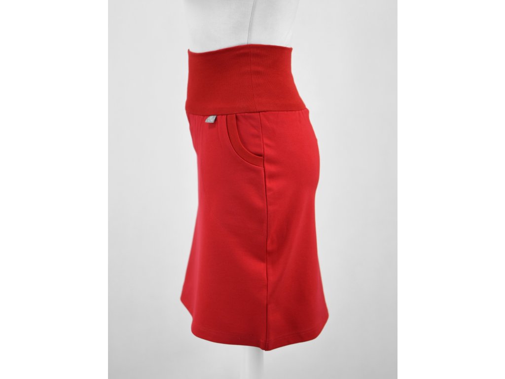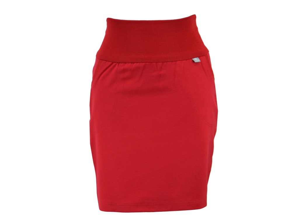 Dámská sukně pouzdrového střihu s dvojitým elastickým pasovým okrajem vhodným pro většinu velikostí. Sukně je na tělo a obepne hýždě a nohy. Kapsy v bocích jsou olemovány pružným nápletem. Nemá podšívku, dá se i tak nosit na punčochy i holé nohy.