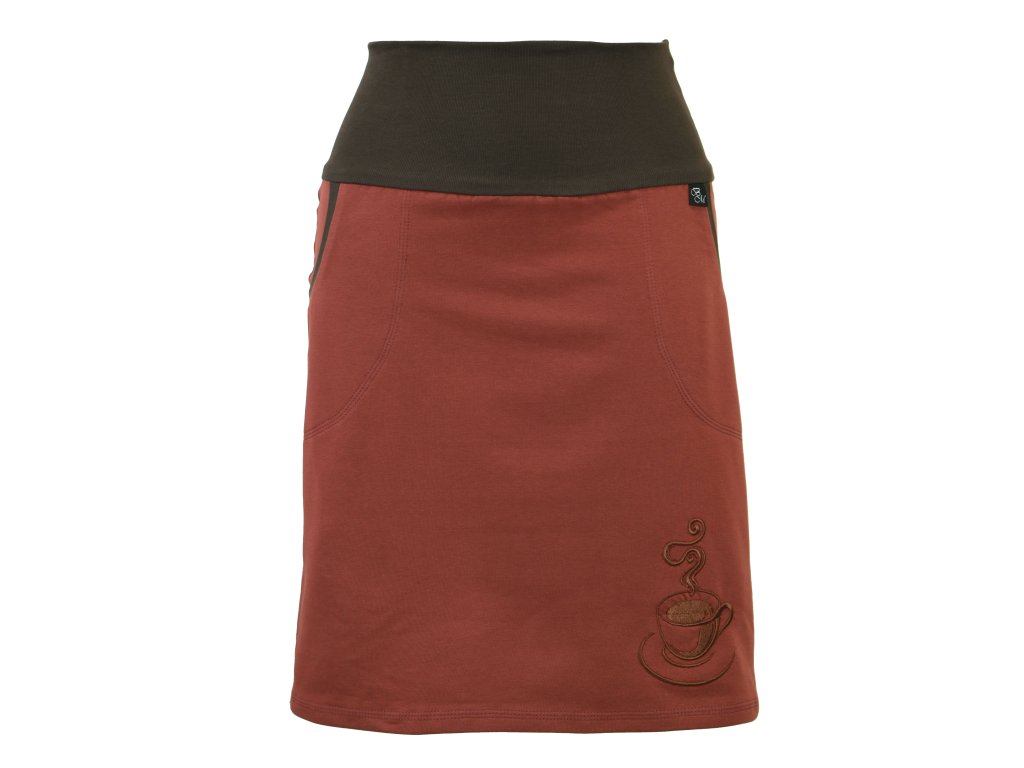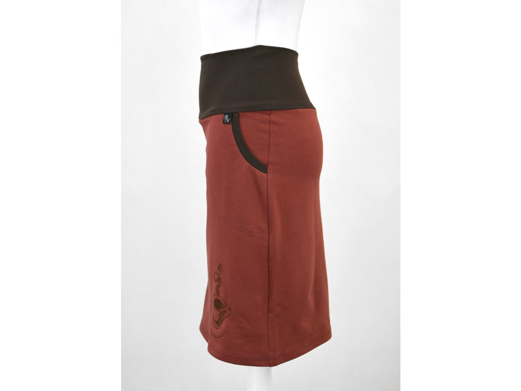 Dámská sukně pouzdrového střihu s dvojitým elastickým pasovým okrajem vhodným pro většinu velikostí. Sukně je na tělo a obepne hýždě a nohy. Kapsy v bocích jsou olemovány pružným nápletem. Nemá podšívku, dá se i tak nosit na punčochy i holé nohy.