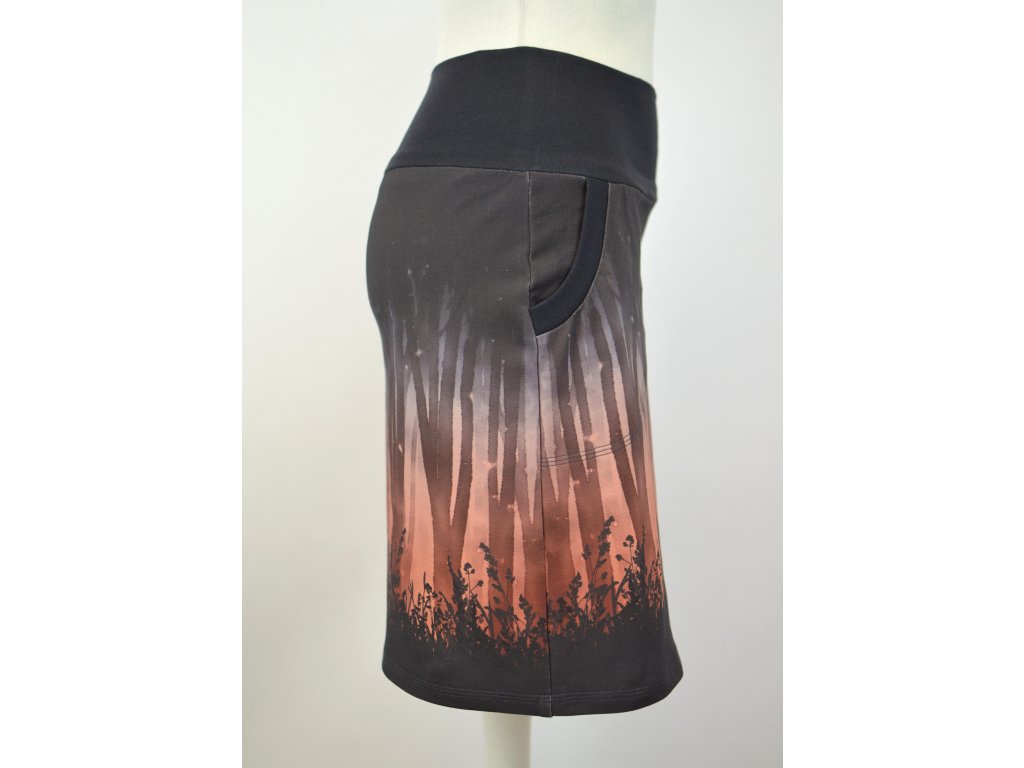 Dámská sukně pouzdrového střihu s dvojitým elastickým pasovým okrajem vhodným pro většinu velikostí. Sukně je na tělo a obepne hýždě a nohy. Kapsy v bocích jsou olemovány pružným nápletem. Nemá podšívku, dá se i tak nosit na punčochy i holé nohy.