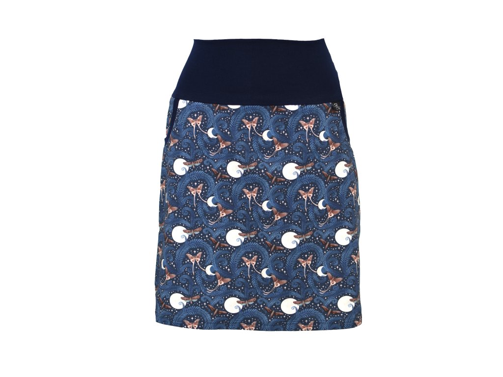 Dámská sukně pouzdrového střihu s dvojitým elastickým pasovým okrajem vhodným pro většinu velikostí. Sukně je na tělo a obepne hýždě a nohy. Kapsy v bocích jsou olemovány pružným nápletem. Nemá podšívku, dá se i tak nosit na punčochy i holé nohy.