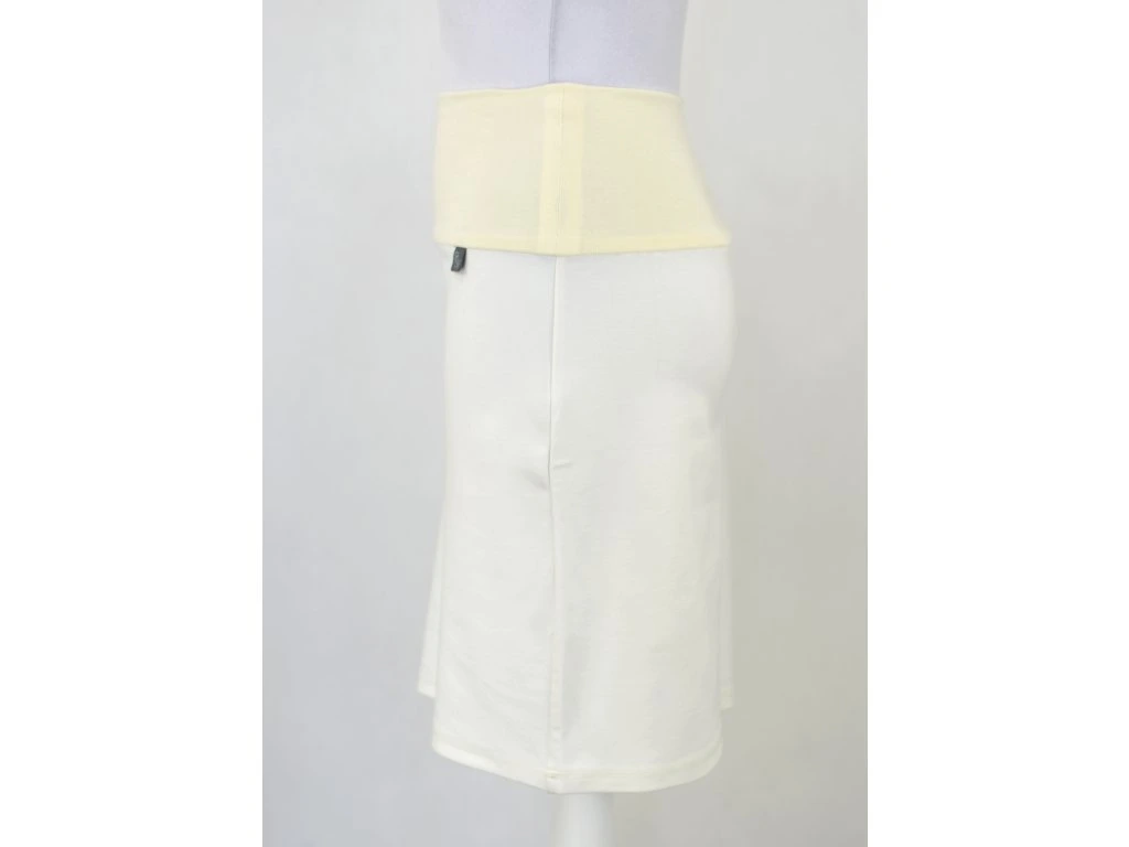 Dámská sukně pouzdrového střihu s dvojitým elastickým pasovým okrajem vhodným pro většinu velikostí. Sukně je na tělo a obepne hýždě a nohy. Kapsy v bocích jsou olemovány pružným nápletem. Nemá podšívku, dá se i tak nosit na punčochy i holé nohy.