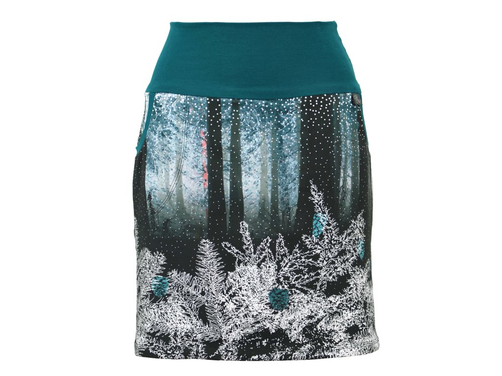 Dámská sukně pouzdrového střihu s dvojitým elastickým pasovým okrajem vhodným pro většinu velikostí. Sukně je na tělo a obepne hýždě a nohy. Kapsy v bocích jsou olemovány pružným nápletem. Nemá podšívku, dá se i tak nosit na punčochy i holé nohy.