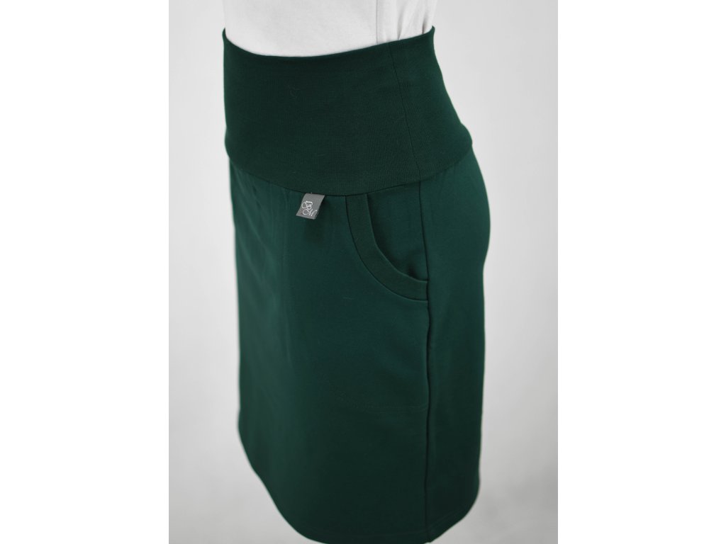 Dámská sukně pouzdrového střihu s dvojitým elastickým pasovým okrajem vhodným pro většinu velikostí. Sukně je na tělo a obepne hýždě a nohy. Kapsy v bocích jsou olemovány pružným nápletem. Nemá podšívku, dá se i tak nosit na punčochy i holé nohy.