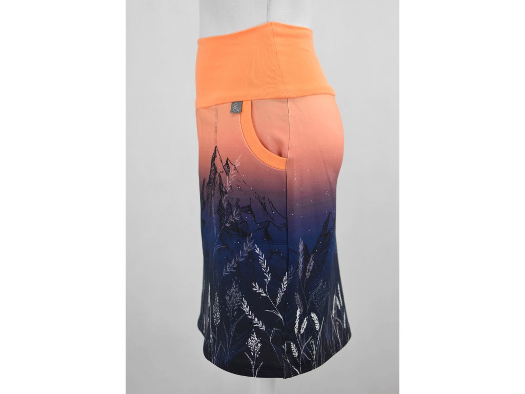 Dámská sukně pouzdrového střihu s dvojitým elastickým pasovým okrajem vhodným pro většinu velikostí. Sukně je na tělo a obepne hýždě a nohy. Kapsy v bocích jsou olemovány pružným nápletem. Nemá podšívku, dá se i tak nosit na punčochy i holé nohy.
