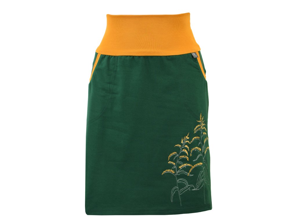 Dámská sukně pouzdrového střihu s dvojitým elastickým pasovým okrajem vhodným pro většinu velikostí. Sukně je na tělo a obepne hýždě a nohy. Kapsy v bocích jsou olemovány pružným nápletem. Nemá podšívku, dá se i tak nosit na punčochy i holé nohy.
