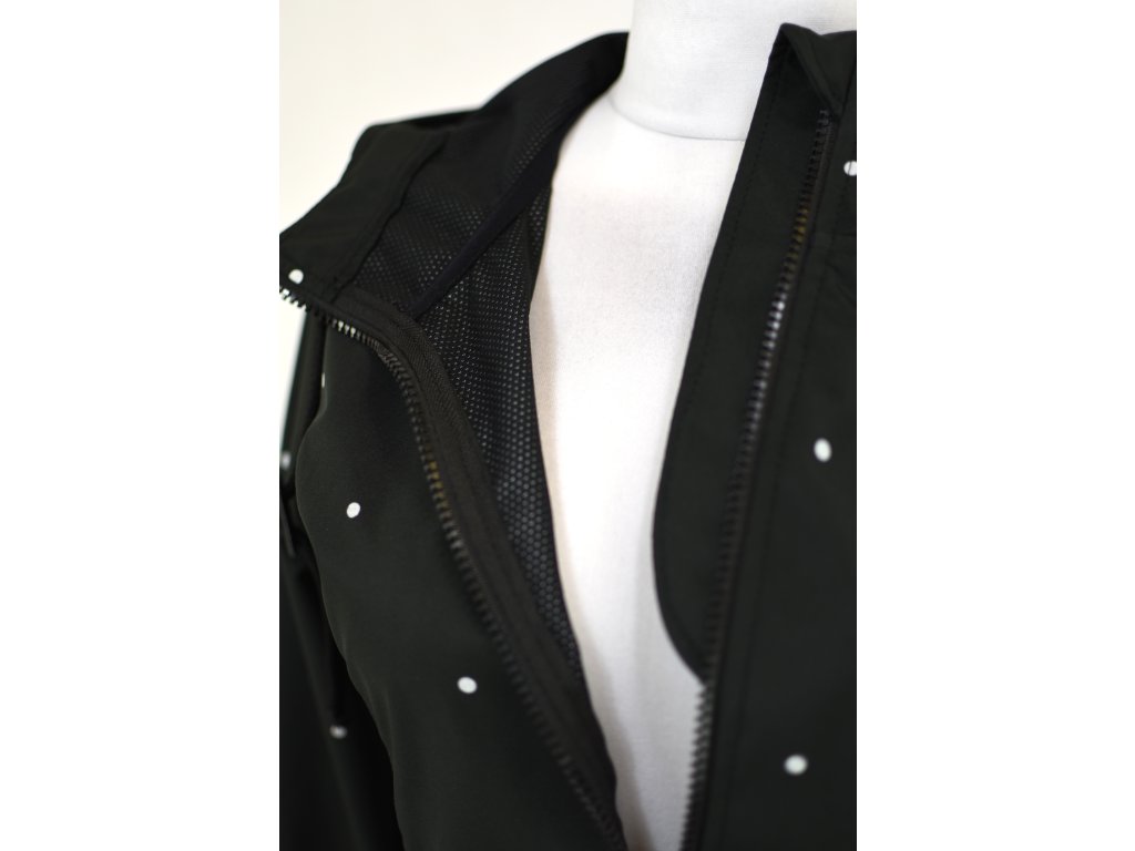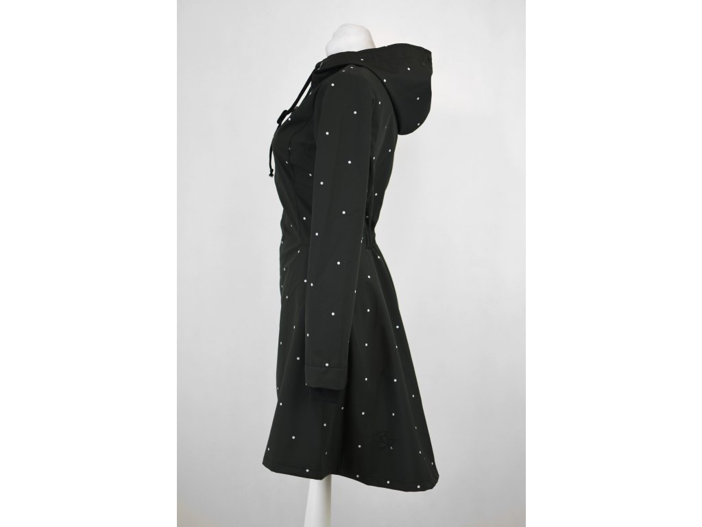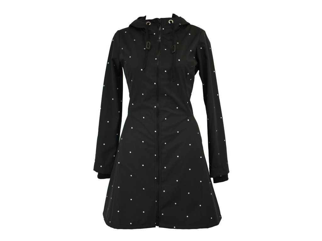 Kabát pršiplášť - půlkolový - černý puntíkatý