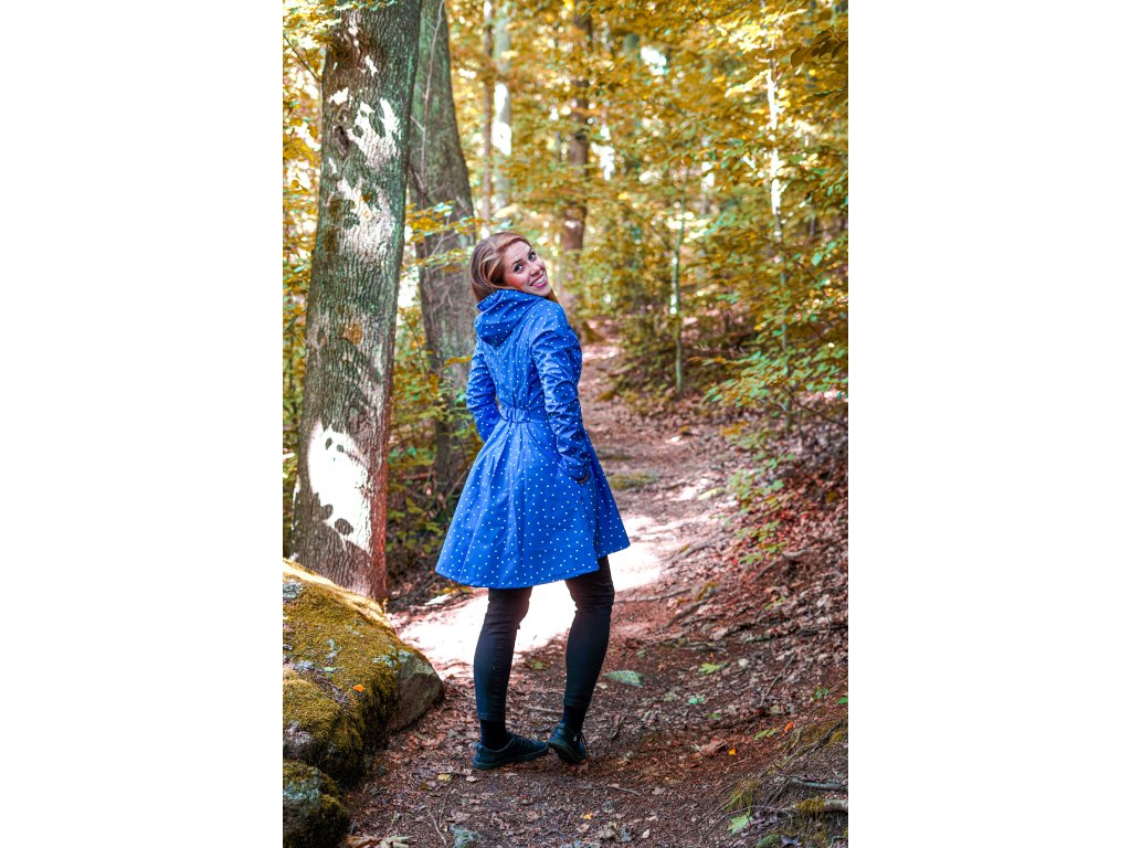 Kabát pršiplášť - půlkolový - modrý puntíkatý
