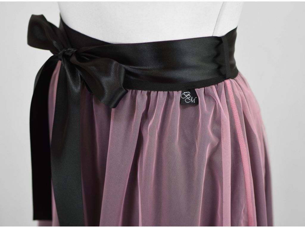 Půlkolová sukně - guma - černá a světle růžový tyl
