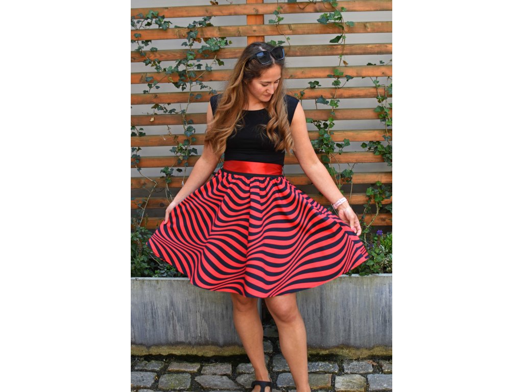 Sukně vychází ze střihu "půlkolových šatů" a je tvarovaná. Není tak objemná jako kolová, ale i tak si drží hezky svůj tvar... :)